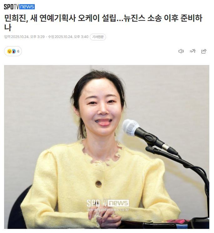 据采访,ADOR前代表闵熙珍成立了新演艺公司ooak Co., Ltd,并于16日完成了法人登记。
