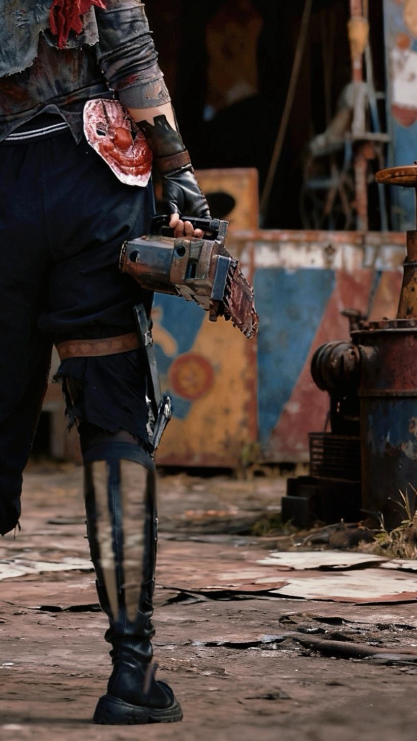 【那瓶镪水是压死骆驼的最后一根稻草】——致敬这次COS灵感来源《德州电锯杀人狂》 衣服采用旧装cult形式比起游戏局内更贴合现实版的月亮河惨案。 电锯采用真电锯做旧二改