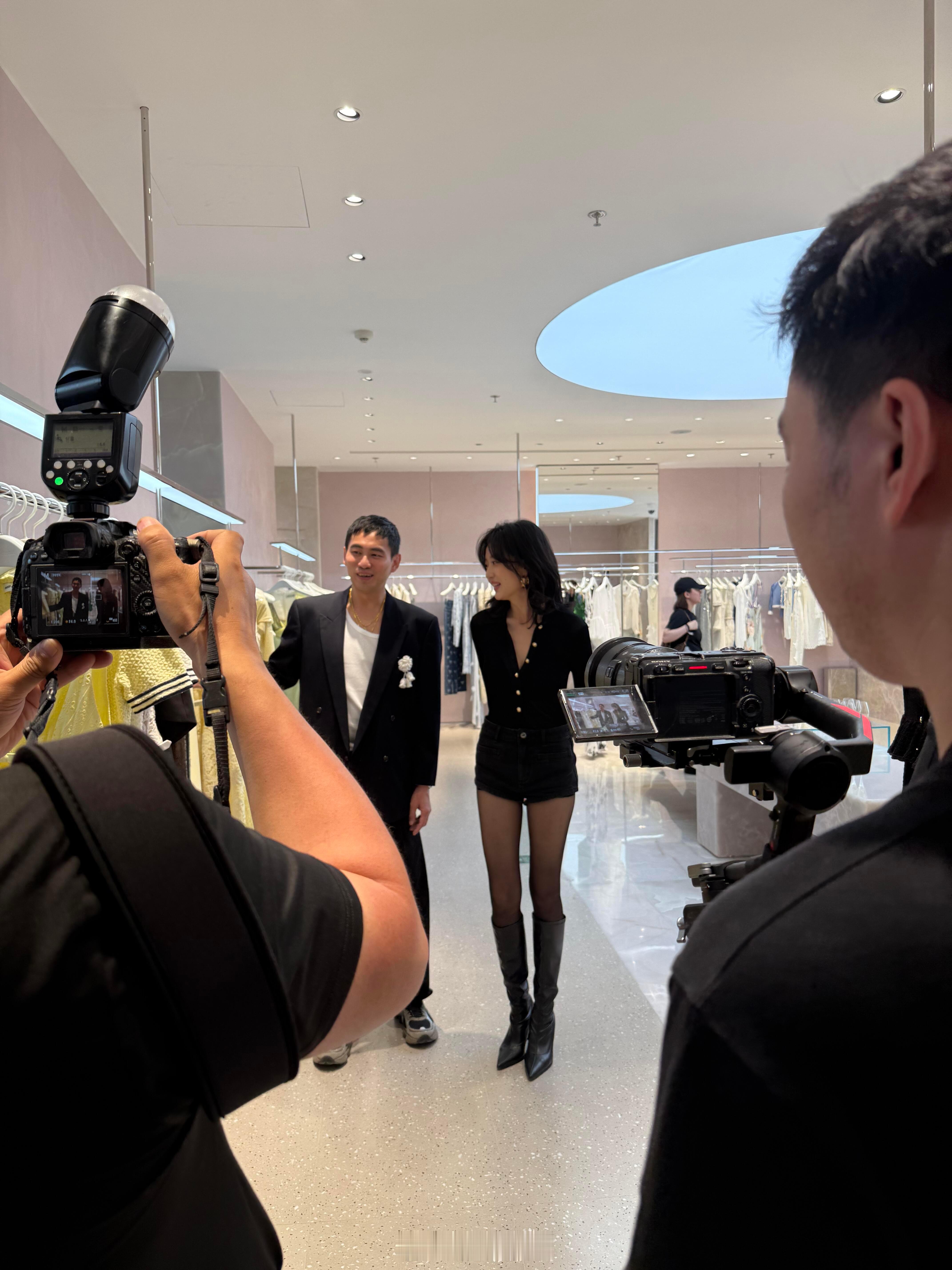 张天爱跟素人合影,胯真的好宽,大宅院似的