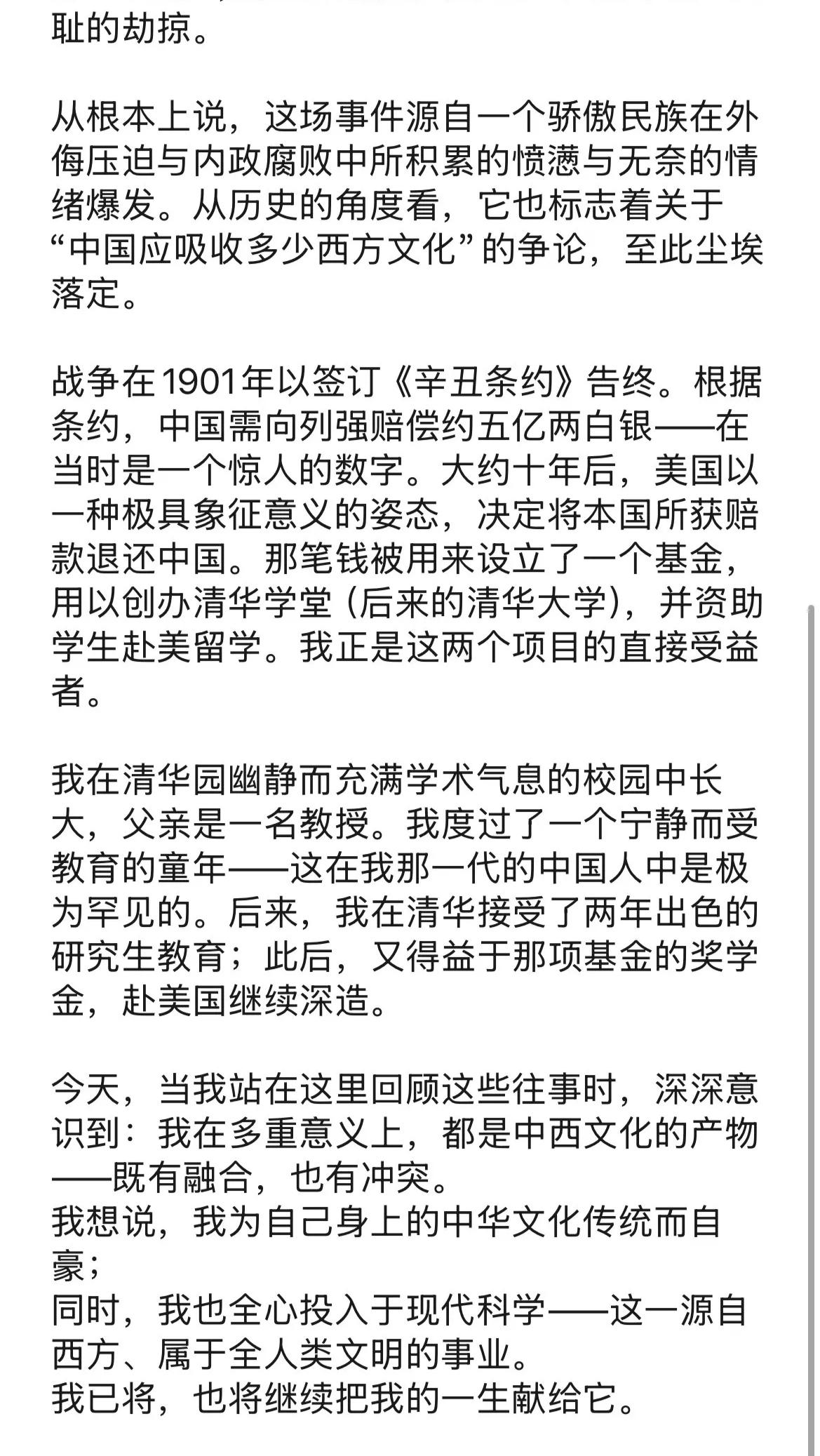 今天,杨老先生追悼会在北京举行,而同时,一份当年杨老先生获得诺贝尔奖上台时的获奖感言也有人将它翻译成了中文,并在网络中曝光。 个人阅读了杨老的感言,才疏学浅的我都能够感觉到,在当年意气风发的杨老先生骨子里,都有一股非常浓烈的爱国情怀,不知道那些肆意诋毁杨老先生的人,是否好生看看当年他的这篇获奖感言后,能有一些愧疚呢?