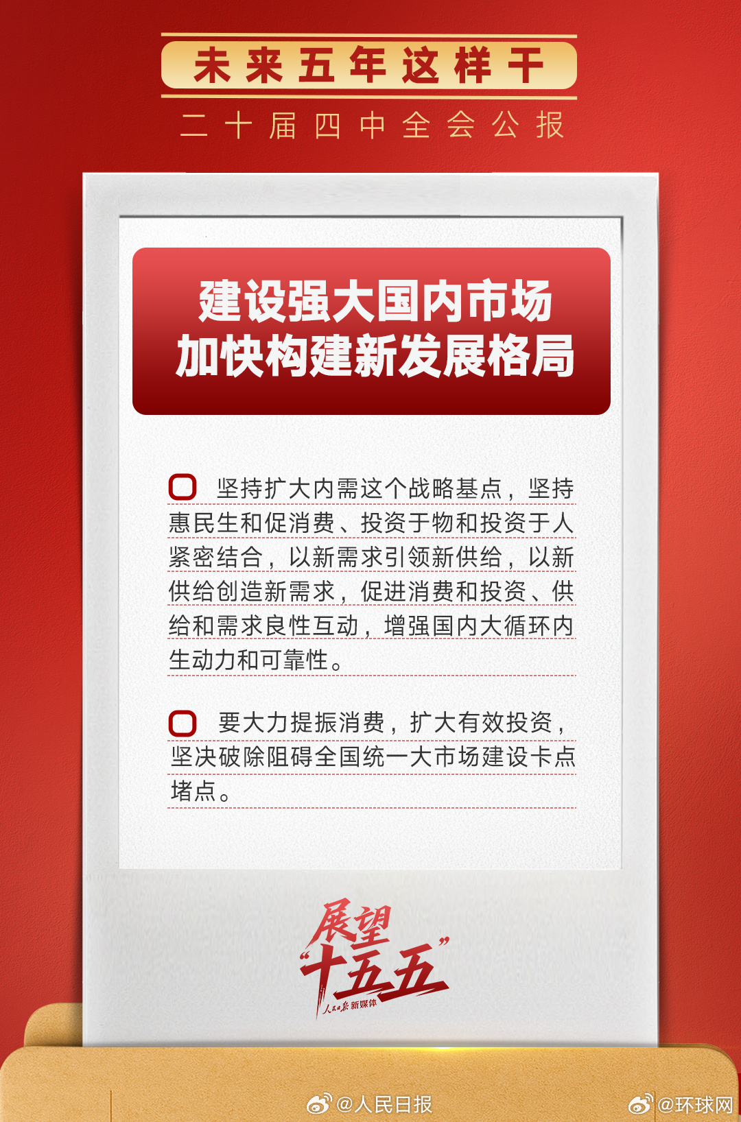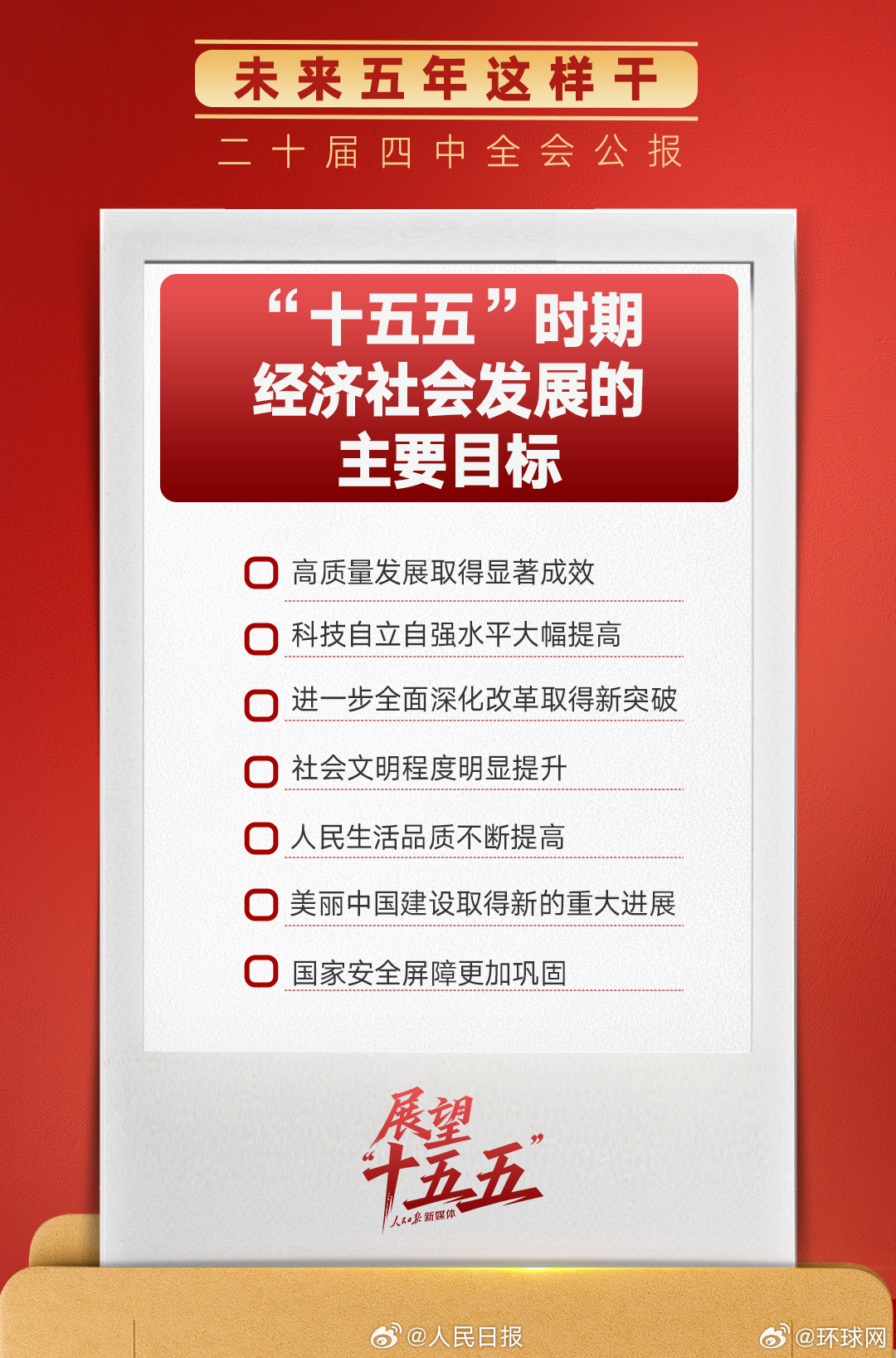 #你好十五五#【#未来五年中国这样干#】锚定“十五五”主要目标,未来五年这样干。戳图了解,一起奋斗↓↓#解读四中全会公报#(人民日报)