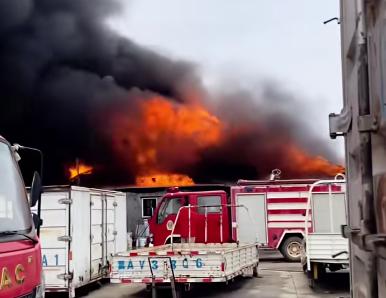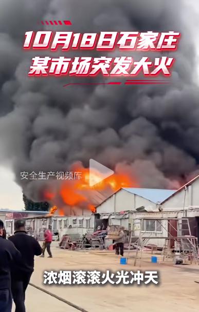 石家庄10月18号下午,瑞诚二手车市场突然冒起浓烟 没一会儿就火光冲天,黑