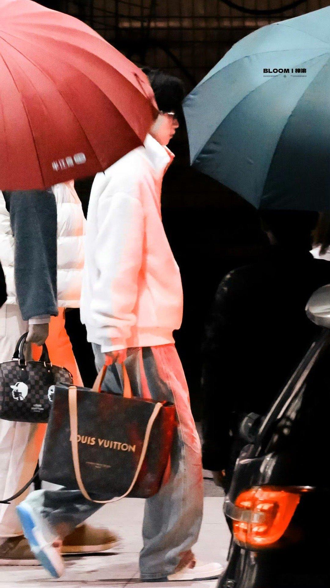 从伞下走出来的那一瞬间好像贵公子,梓渝现在越来越有巨星范儿了。。梓渝出机场招手撒饭
