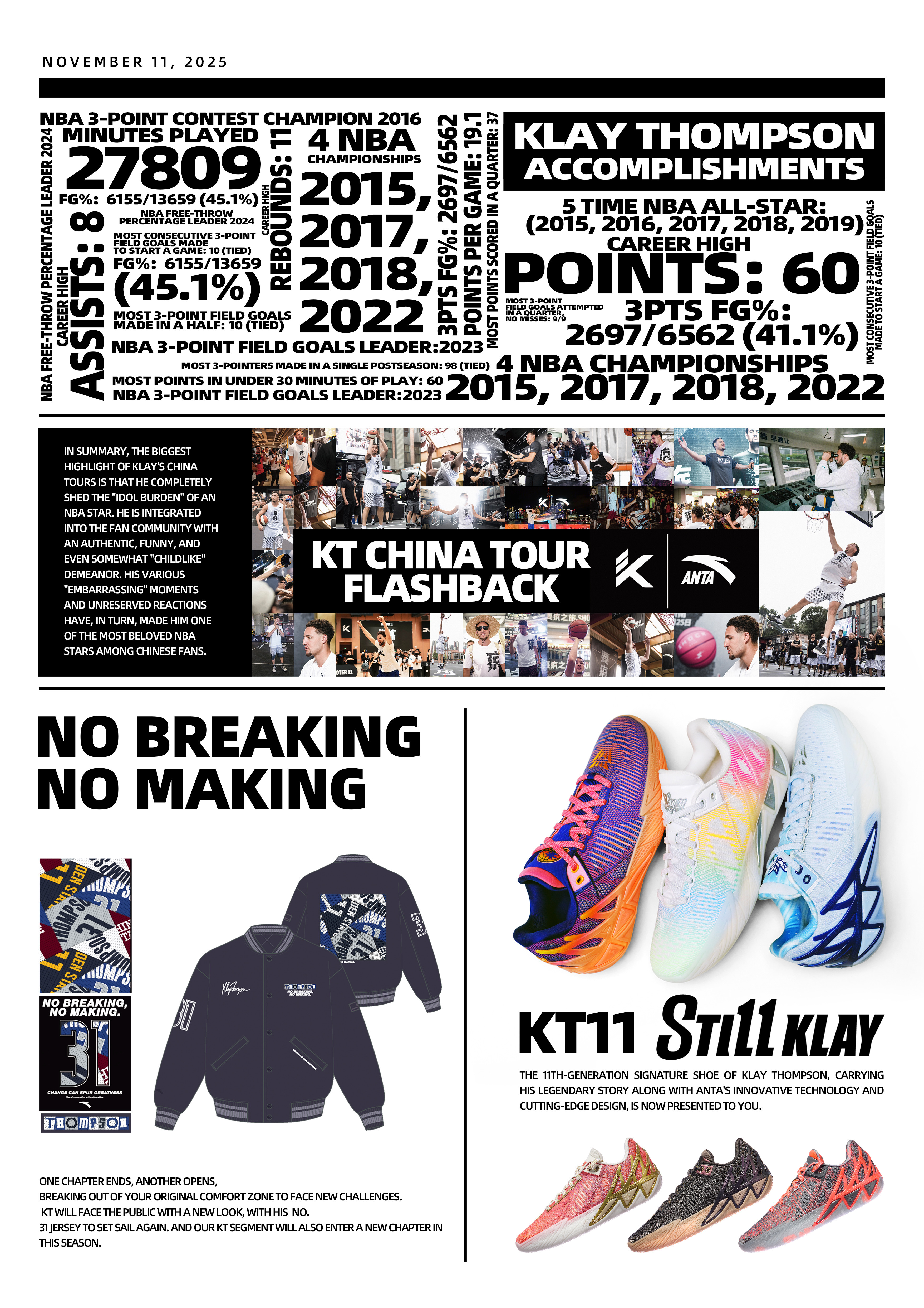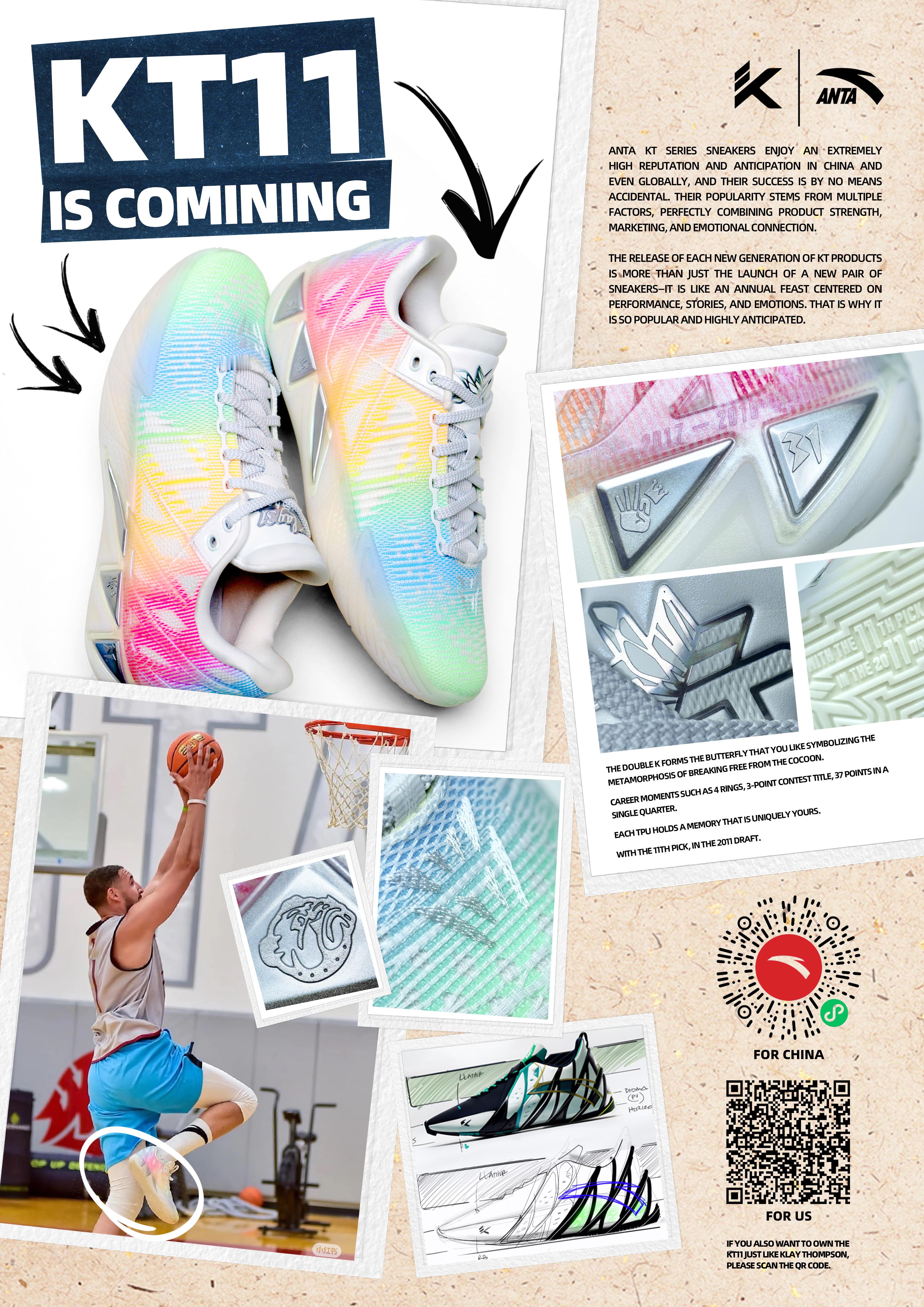 安踏为KT11独家定制复古战报,将克莱经典时刻与球鞋设计灵魂浓缩为永恒版面。