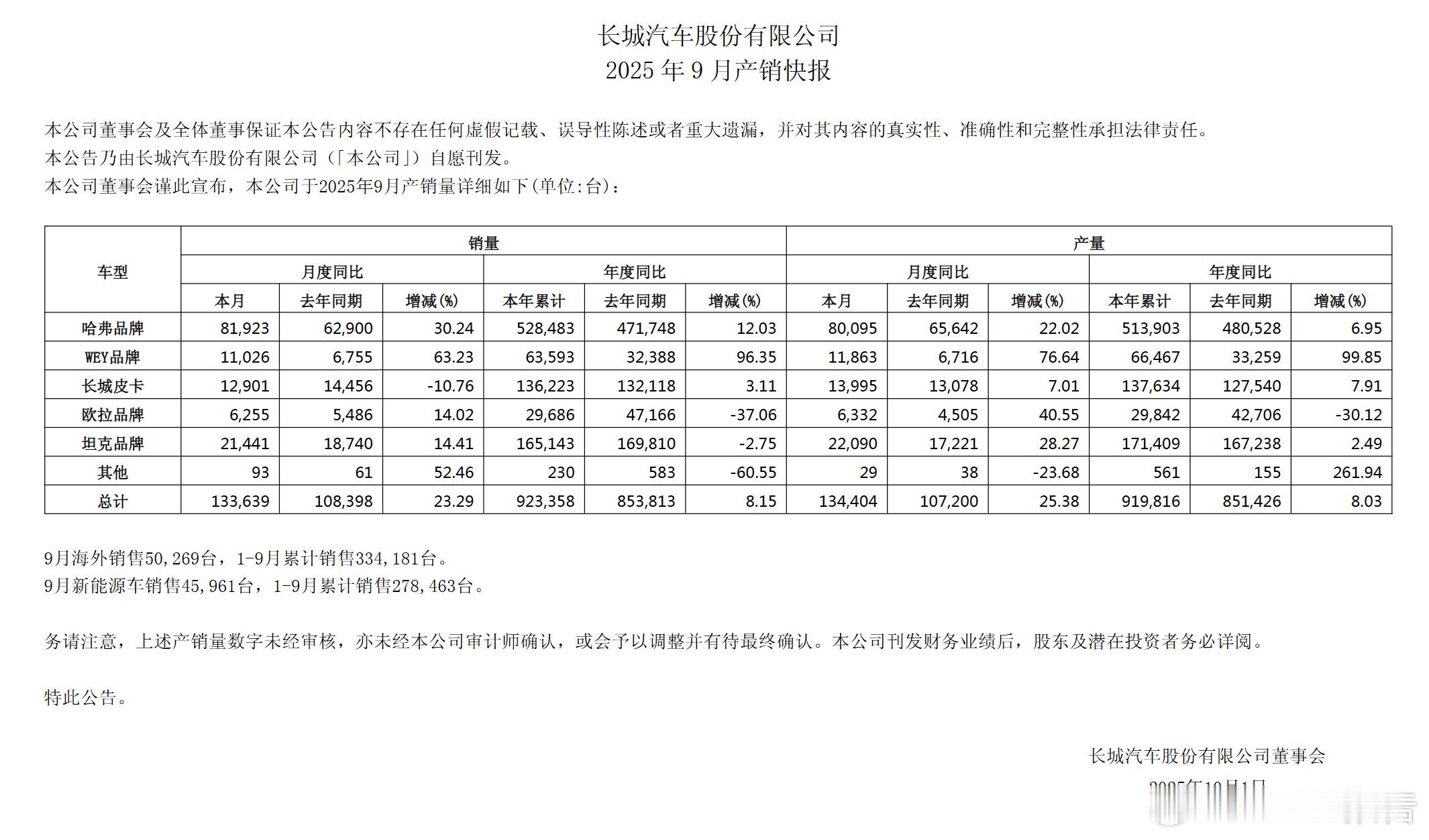 10月24日,今日下午,长城汽车发布了2025年第三季度财报。