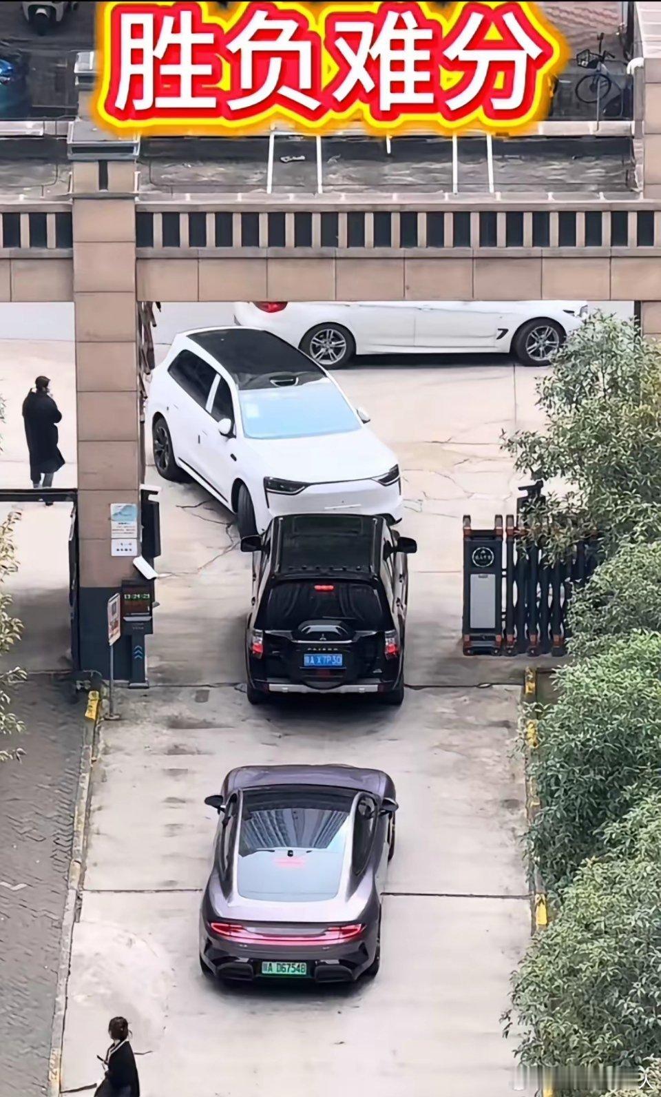 人真的不能斗气啊!小区门口两个开车的年轻人一个出小区,一个进小区,顶在门口谁也不