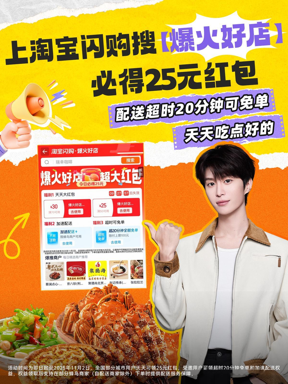 淘宝闪购品牌大使范丞丞电影里是梦中情儿,现实里是小嘴叭儿叭儿范丞丞,和范丞丞上淘宝闪购必得25元红包点大餐没压力,点外卖认准爆火标签好店,享受三大权益,上淘宝闪购搜爆火好店吃点好的性价比美食挑花眼,上淘宝闪购搜【爆火好店】,每天必得25元红包,配送超时20分钟可免单,今天就给自己点一顿尽兴的宵夜。