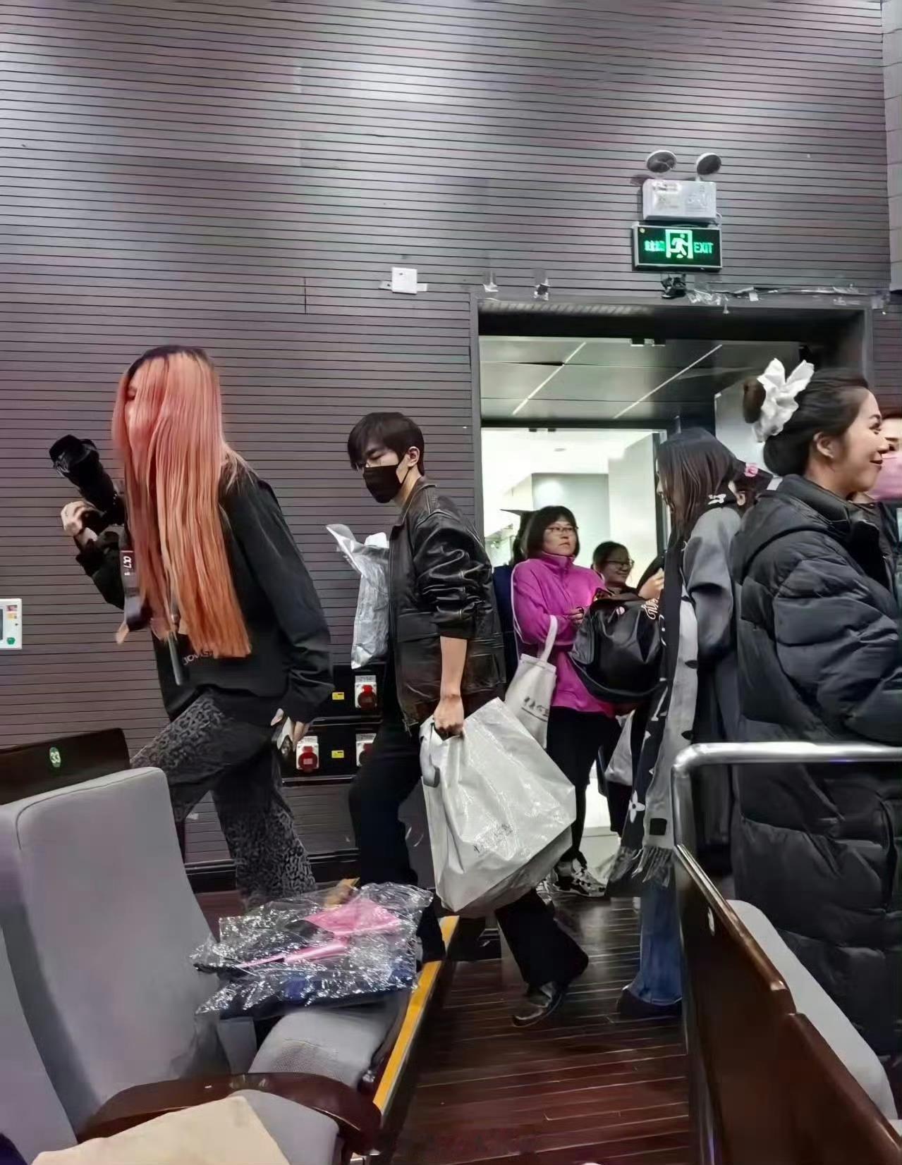张天爱跟素人合影,胯真的好宽,大宅院似的