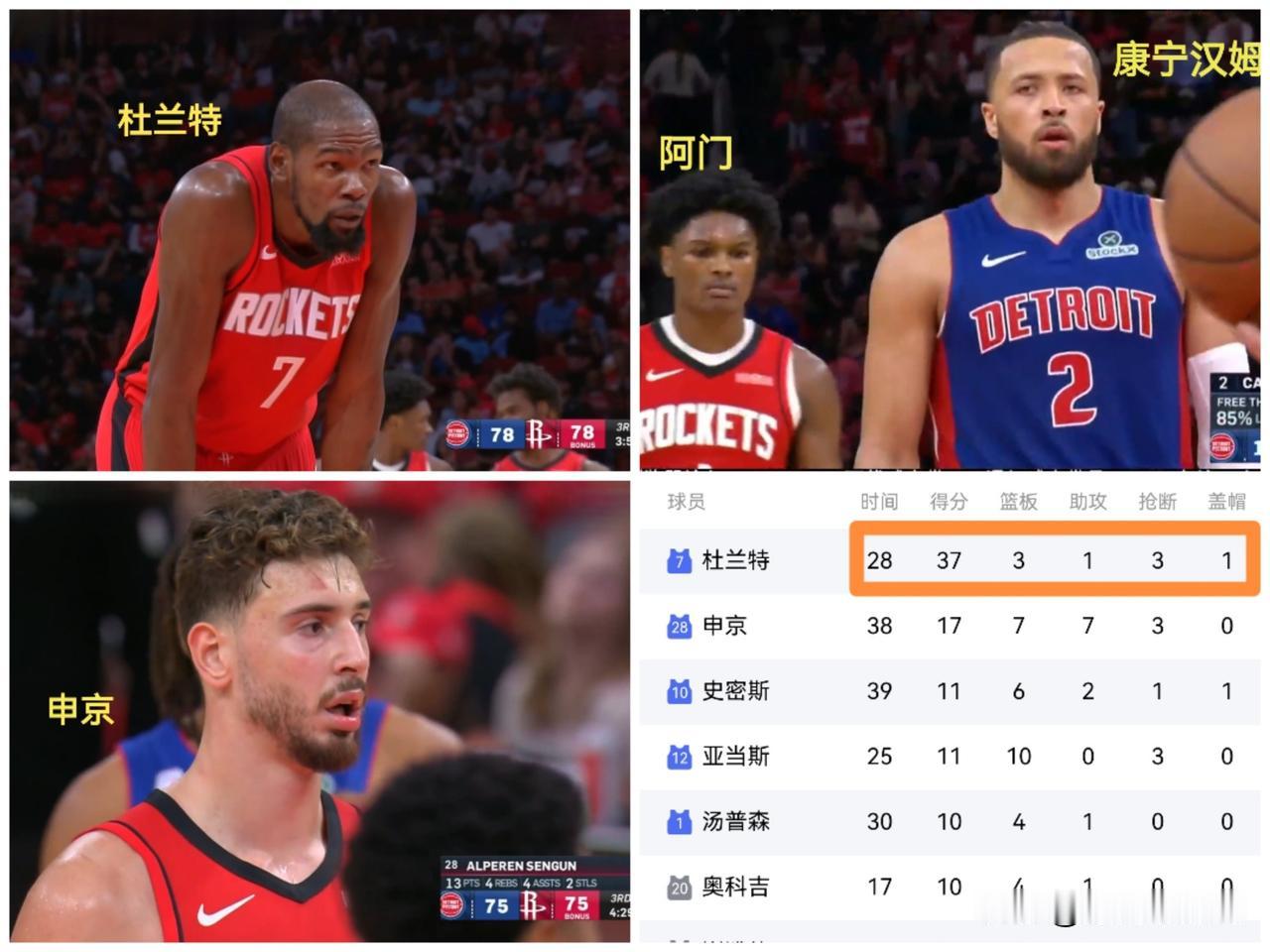 火箭111-115活塞,杜兰特空砍37分!火箭队主场失利原因总结: 1、没有合格控卫。助攻方面,申京7个+谢泼德1个+阿门1个=康宁汉姆9个,阿门的弟弟奥萨尔-汤普森都有4个助攻。没有一个好的控卫来组织进攻,火箭队只能累死杜兰特单打。 2、高个阵容跑不动。火箭队“死亡五大”的阵容最大的问题是跑不过对方,尤其是活塞队有康宁汉姆这样的传球手,有奥萨尔-汤普森这样的快攻悍将,快攻得分刷刷的。 3、陷入犯规麻烦。申京和阿门都过早背上三四次犯规,要么下场休息,要么场上不敢伸手。而活塞队虽然杜伦被罚出场,霍兰德和斯图尔特也在第四节6犯毕业,但他们在活塞主要是角色球员,远远比不上申京和阿门对火箭队组织进攻和防守威慑的重要性。