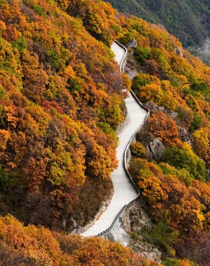 北京房山的深秋格外美 房山的秋天,美得就像打翻的调色盘!尤其是百花山,作为北京第四高峰,秋色格外有层次。从山脚到1991米的主峰,你能看到枫叶的火红、桦林的金黄,还有松柏的翠绿交织在一起。