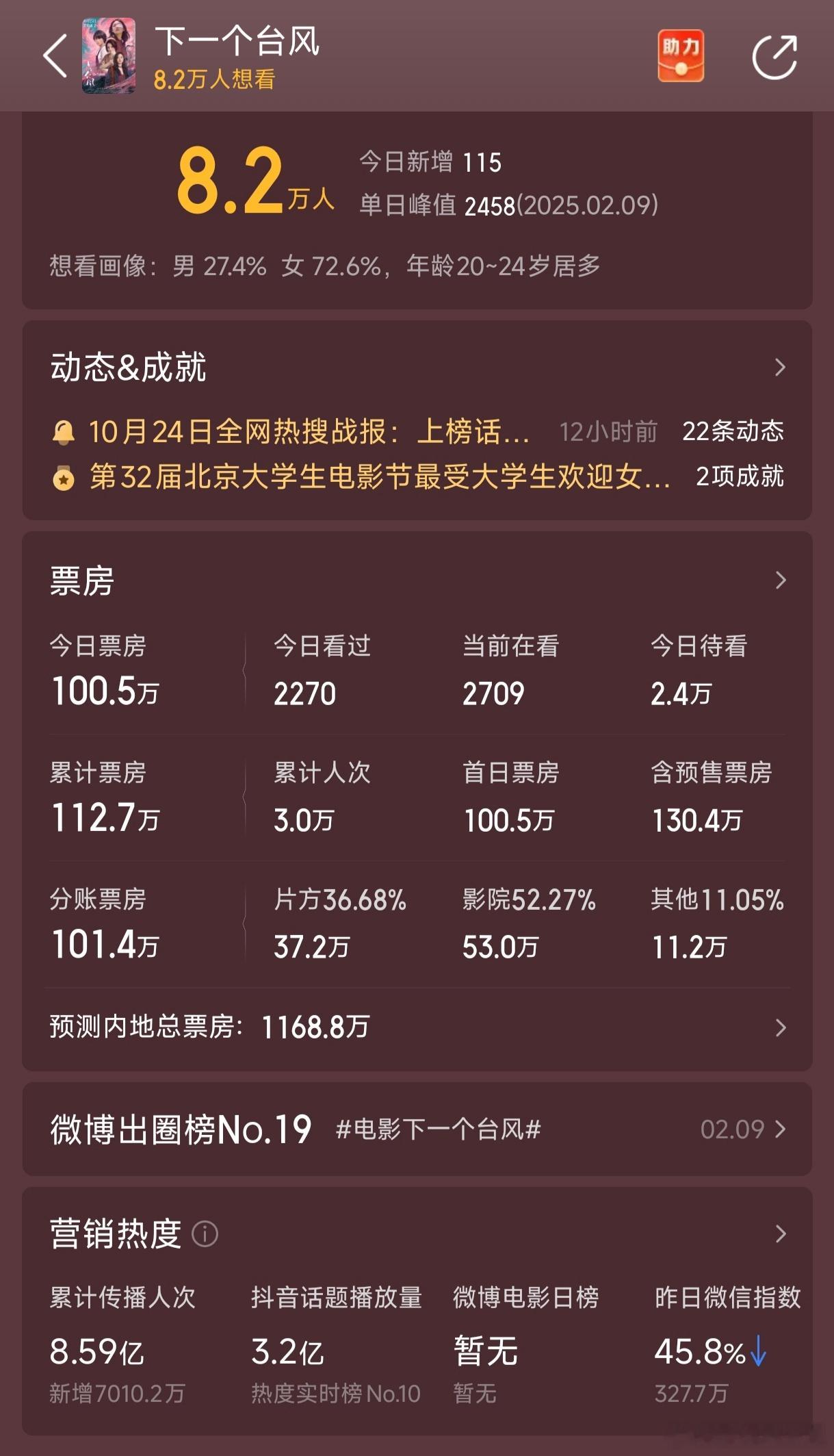 下一个台风票房破100万了,看到很多人在抵制这部电影,有没有受到影响我不知道,但为它省了不少宣发费却是真的[苦涩]