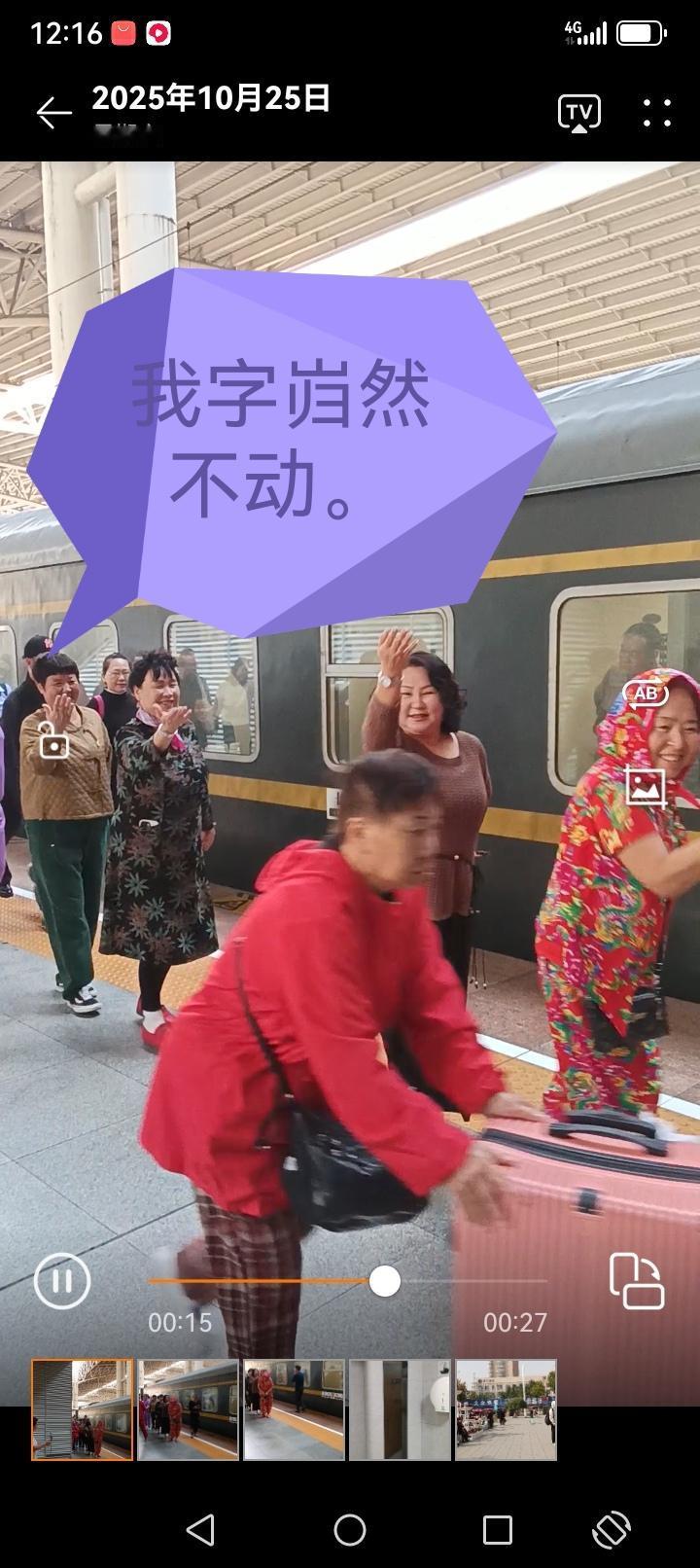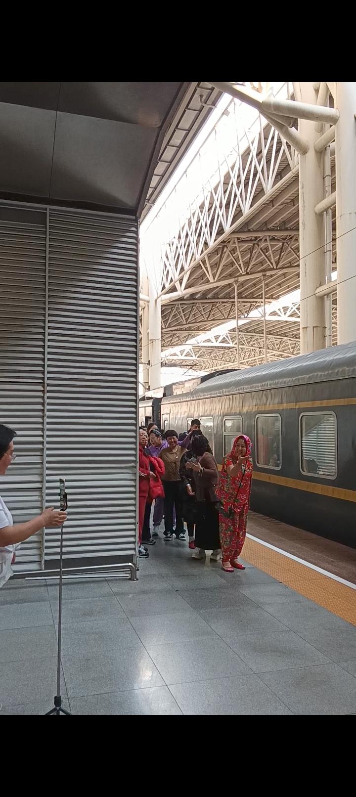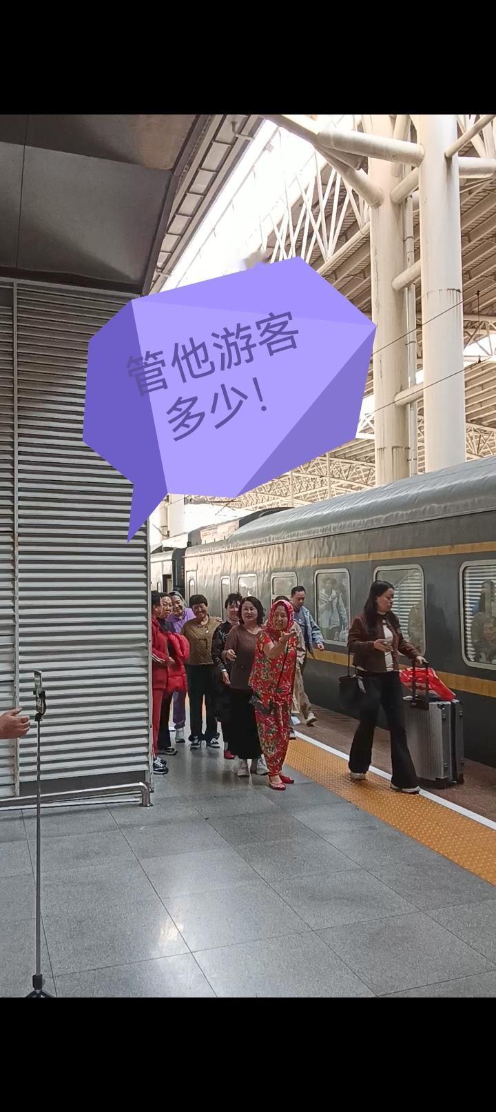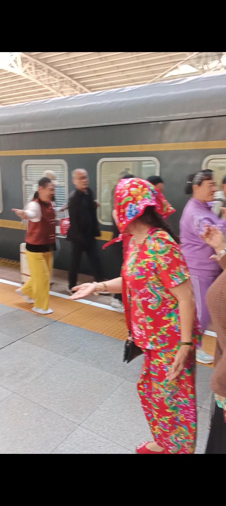 蒡姐南行旅途见闻 东北大妈自寻其乐 我们从东北到广西南下旅途中,第3次换车是从昨晚4:50从山海关上车,经过一整夜十几个小时后,今天上午10:10,终于路过一个大站,江西南昌。 停车时间近20分钟,乘客们纷纷下车,放松筋骨。来自铁岭的一群大妈可不甘寂寞,他们立刻支起直播架, 一段东北大妈的集体热舞让人们驻足同时,也让人们议论纷纷。 大妈们自带东北小品的喜感,有多少乘客在他们的队伍中穿梭也不怯场。面对很多人的驻足围观也是如入无人之境。放松的表演显得非常自信。 年轻的乘客在拥挤的人流中表现出不屑态度,围观的人们对大妈们能随时找乐也有肯定,当然更多的人是无所谓吧。 允许各种状态的存在是包容,老龄化社会带来的必然结果,这种情况以后可能会越来越多吧。 朋友,您对这种现象怎么看呢?