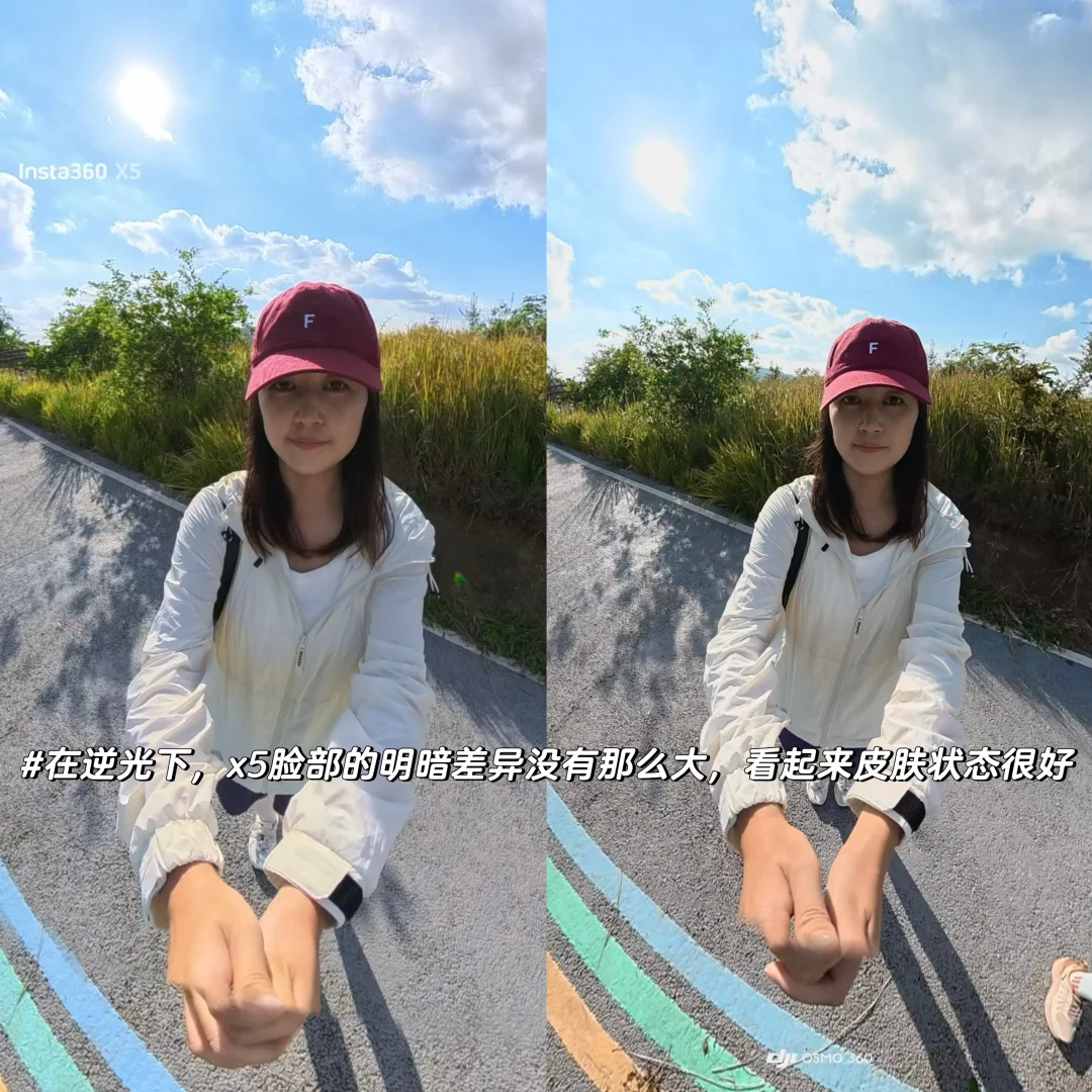 影石X5的白天高动态范围场景很🉑,复杂光线下的效果也处理比较好