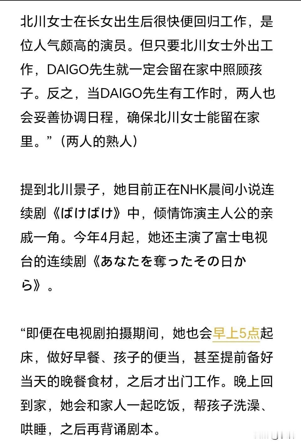 北川景子与Daigo一同出席活动 daigo老得挺明显的,景子还是美的。不想错过和孩子在一起的时间,也不想放下事业,就真的会很累。不过这样得到的也很多。 景子美丽、不傲慢、为自己的事业努力、有做个好母亲的信念。希望她也要注意自己的身体,不要太累! 北川景子 日娱明星