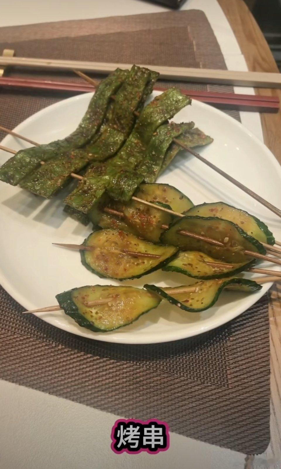 蒋欣被看管成食草动物了,只能吃绿的,烤串都是绿的[允悲]