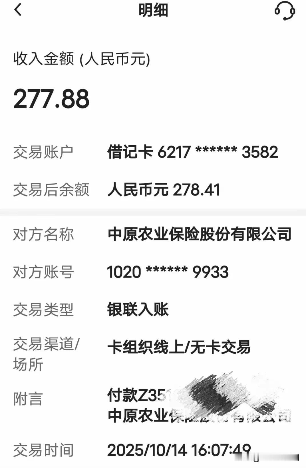 有图有真相,今年我家交了20亩的保险,一共200元,赔了277.88元,除去本钱