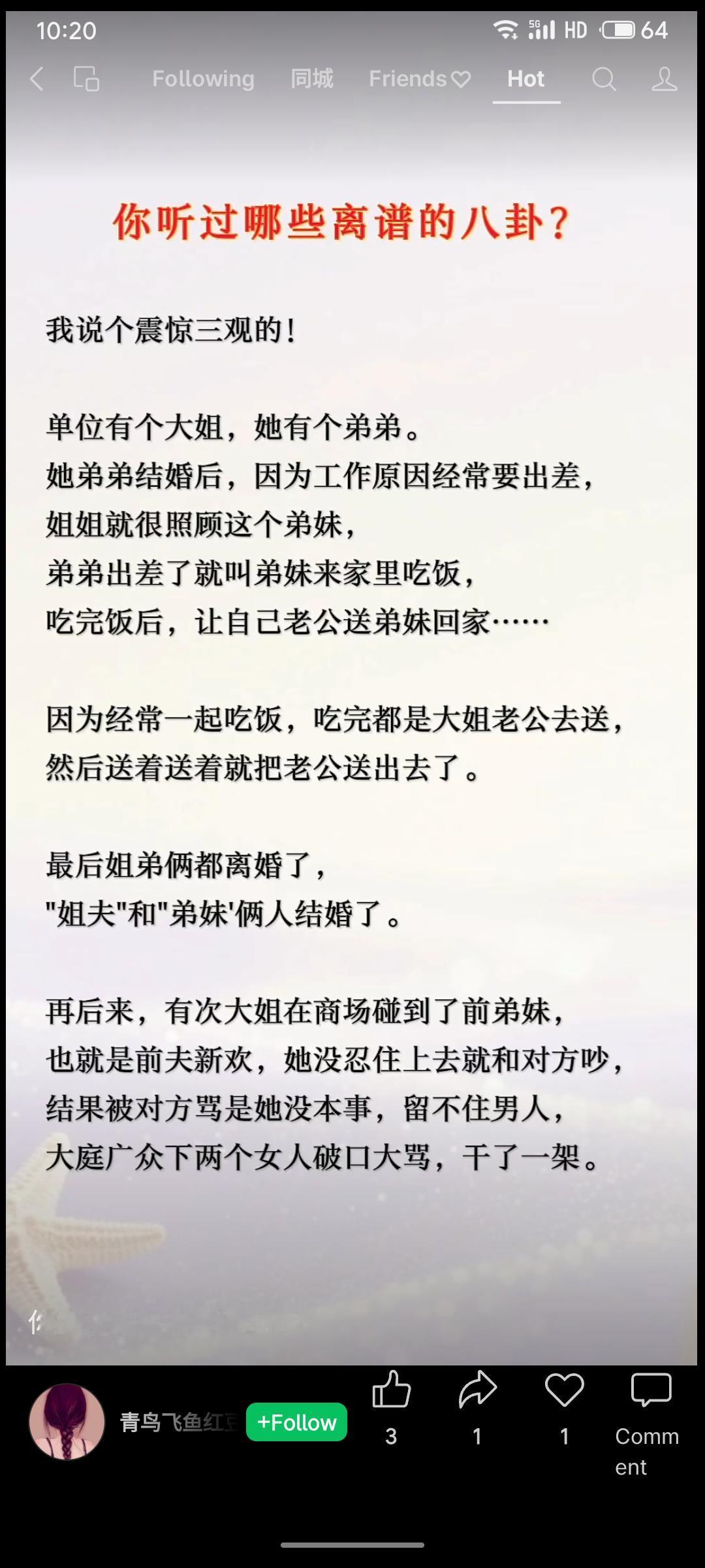 单位大姐常邀弟妹来家吃饭,并让丈夫送其回家。不料丈夫与弟妹暗生情愫,最终姐弟俩双双离婚,"姐夫"与"弟妹"重组家庭。双方后来在商场偶遇爆发冲突,当众争吵厮打。