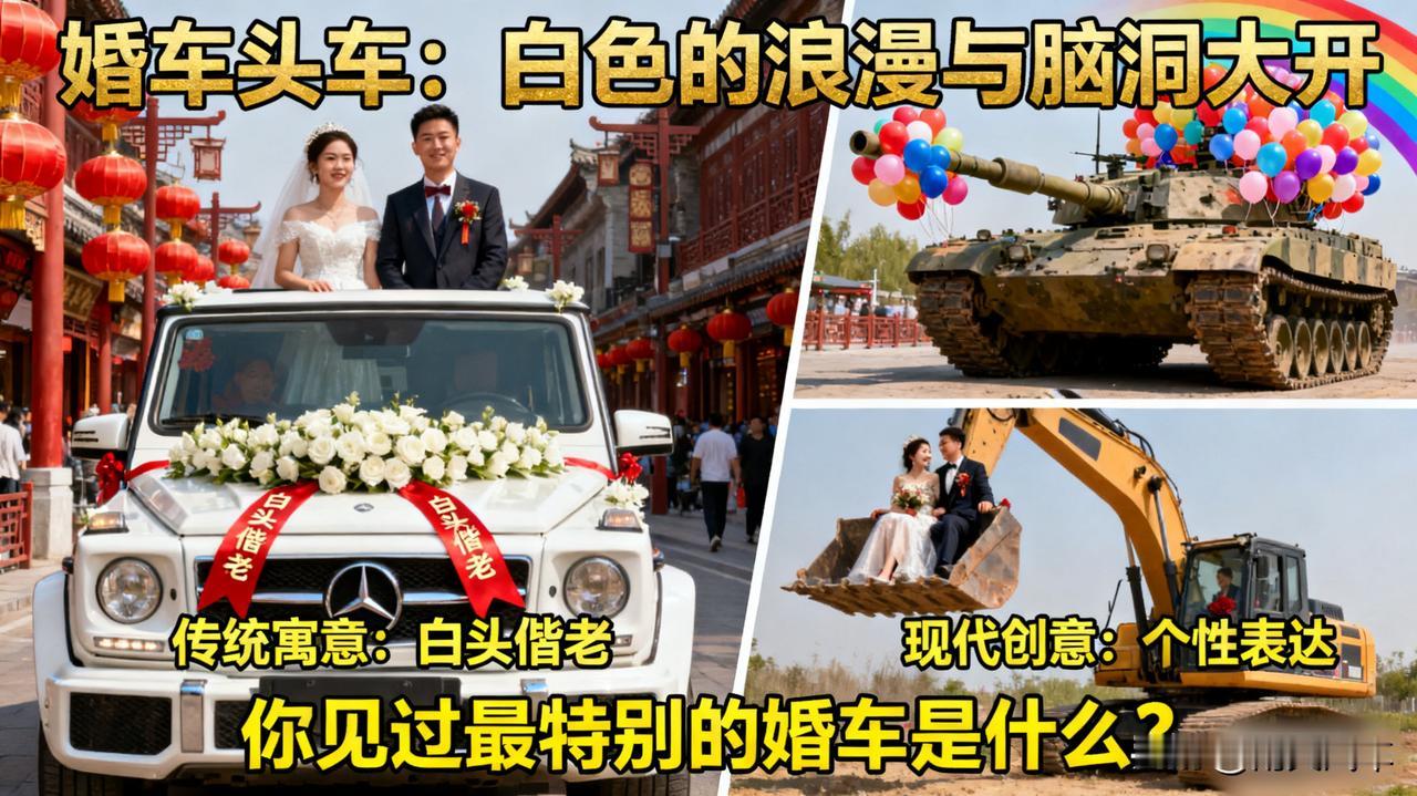 结婚头车,为什么必须是白色? 朋友结婚,头车非要找一台白色奔驰,说是“白头偕老”的好兆头。这说法你听过吗? 感觉现在的婚车选择也越来越多样了,不再局限于BBA,甚至还有用坦克、挖掘机当婚车的,太有意思了! 婚车 婚车仪式 婚车顺序安排 迎亲车布置 婚车品牌 白色婚车 婚车备注