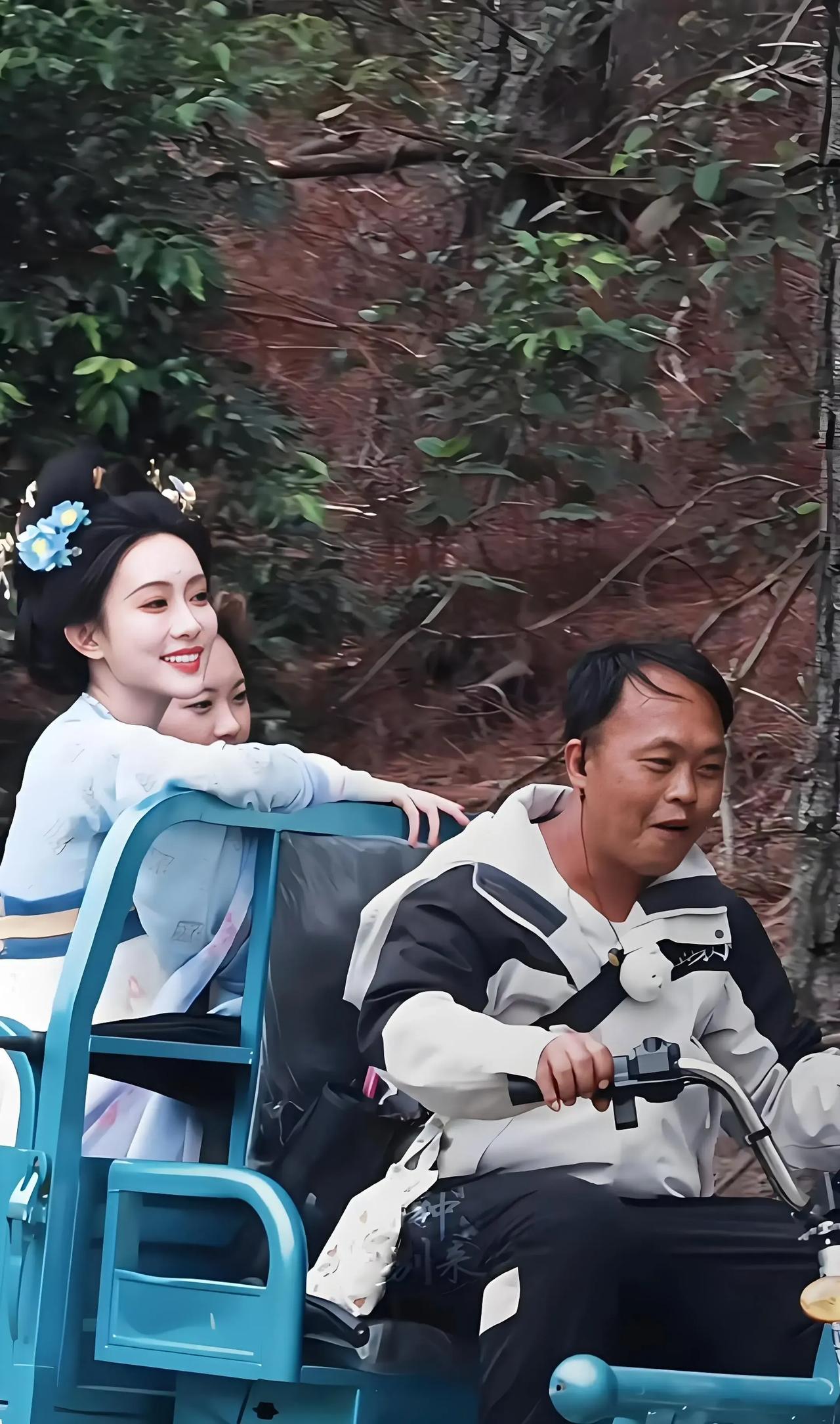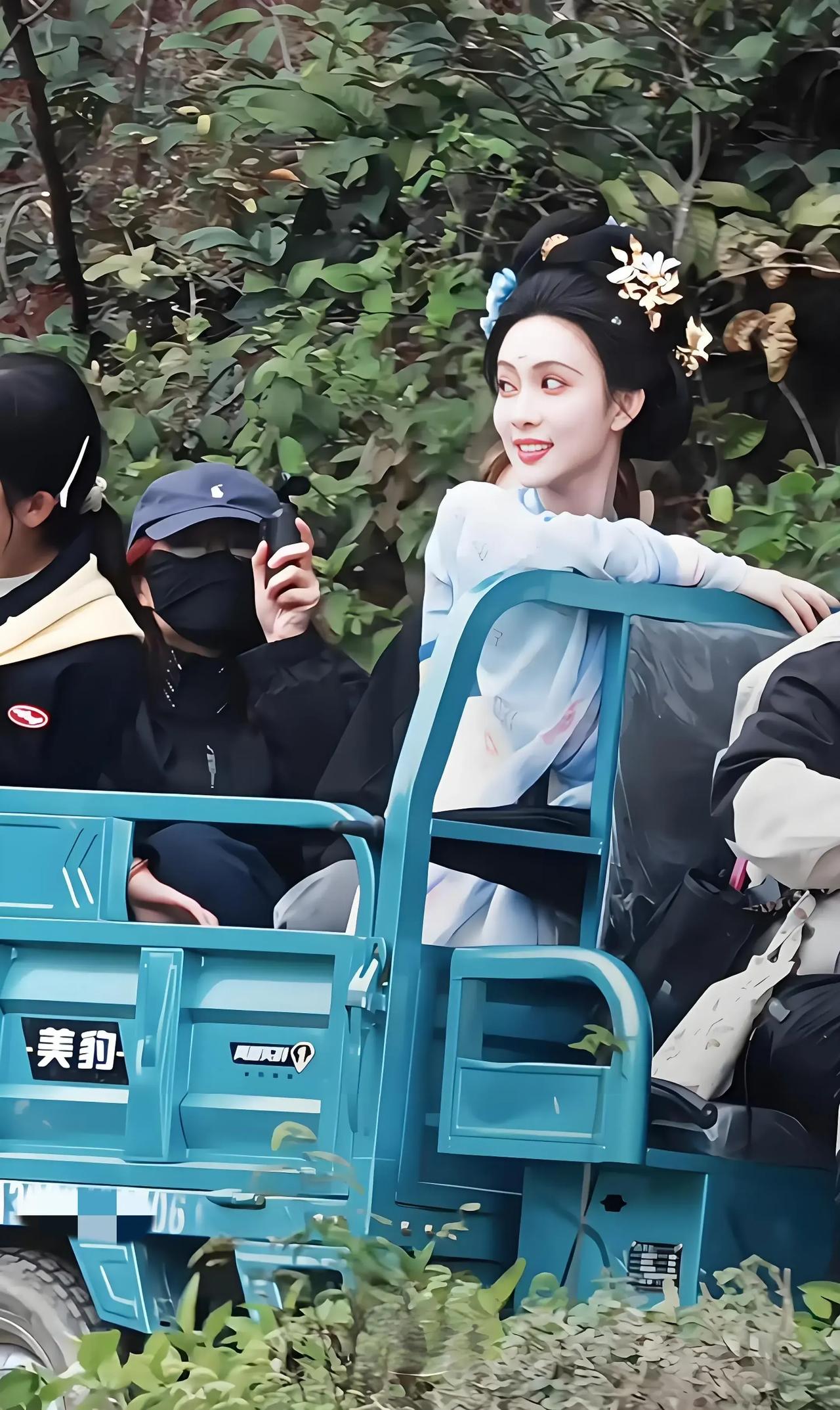 三轮车师傅载着仙女般的姑娘,嘴角都压不住了,还偷偷往后瞄了一眼,心里乐开了花!有人认识这位大美人是谁吗?