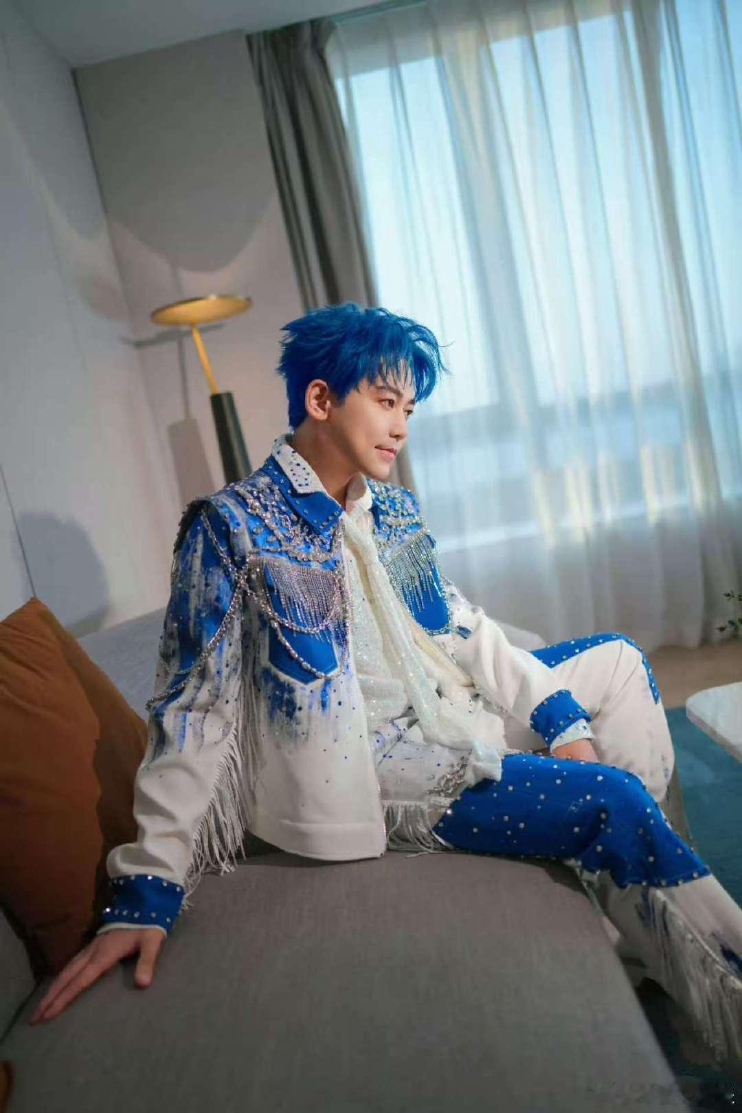 苏醒为0713演唱会染了蓝发被苏醒的蓝发惊到了!这蓝色头发很有个性,他穿着闪亮的演出服,可以想象得到他和兄弟们合唱的时候,蓝发特别显眼,表演超带感0713杭州演唱会