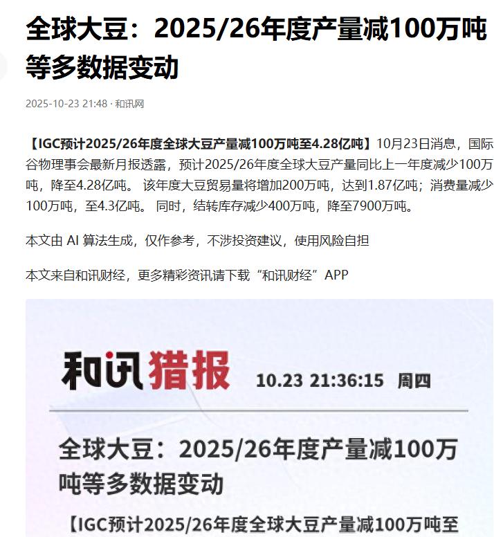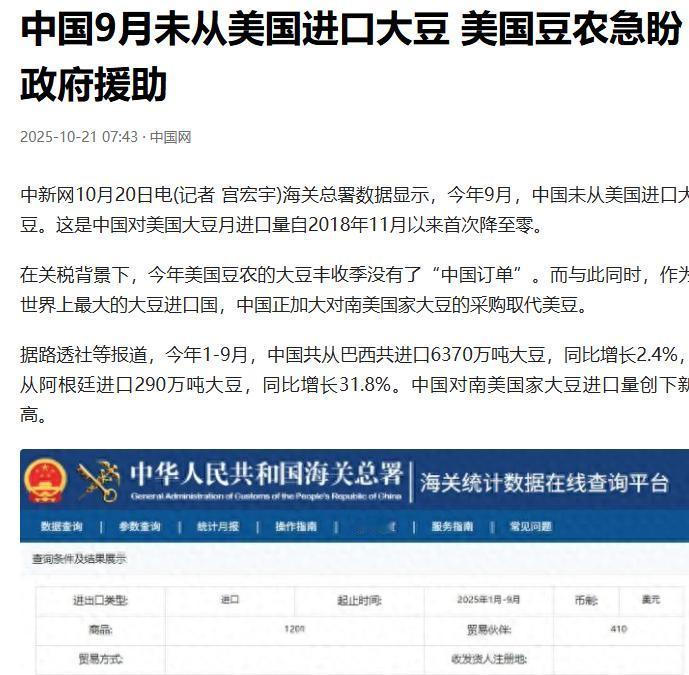 巴西大豆价格对中国猛涨,国内买家一合计,突然集体暂停新订单,直接把巴西和美国的粮食市场玩成了“心理战”。你以为只在菜市场砍价才讲究“时机”?国际贸易里,哪怕是大宗商品,也得讲究“会熬”。有时候,谁先按下暂停键,谁就能把主动权攥得更紧。 中国每年要吞下全球60%的大豆进口量,单对巴西来说,2025年前9个月中国买走的大豆占了巴西出口总量的近80%,9月份更是夸张到93%,相当于巴西大豆田里每三个豆荚里就有两个半要运往中国。 这种依赖度让巴西卖家有了坐地起价的底气,2025年4月那阵子,巴西大豆对华报价简直像是坐了火箭,每蒲式耳居然比芝加哥期货交易所的基准价高出2.8到2.9美元,要知道往年这种价差也就几毛钱的事儿。 更离谱的是到了10月,巴西大豆对中国的出口升水较年初已经暴涨79.9%,现货价创下三年来的峰值。 这波涨价可不是小打小闹,山东一家大型油厂负责人就透露,10月上半月他们的巴西大豆采购成本每吨增加了近300元,一批货算下来要多花好几百万,根本没法接受。 巴西卖家敢这么硬气,说白了就是算准了中国的刚需——咱们国家每年要消耗1.1亿吨大豆,自己地里也就产2000万吨左右,八成以上都得靠进口。 而且今年上半年中国从美国进口的大豆同比下降了近80%,9月更是一粒都没买,巴西几乎成了独一份的供应源。 加上巴西北部主产区10月遭遇持续降雨,120万公顷大豆种植区积水,市场炒作产量会降5%到8%,港口排队时间又拉长到45天,这些成本全转嫁到价格里,巴西卖家自然觉得能拿捏住中国。 但他们显然算错了账,国内几大油厂干脆集体暂停了12月后的新订单,谁也不愿当这个冤大头。 中国敢这么干,底气藏在三笔账里,第一笔是库存家底,这些年大豆储备一直在补,就算短期不进口,现有库存也能撑一阵子,根本不用慌。第二笔是替代选项,虽说阿根廷、乌拉圭这些国家去年加起来才占7%的进口量,但今年阿根廷大豆对华出口已经同比涨了31.8%,更别提美国仓库里还堆着4200万吨滞销库存。 之前中国海关就曾直接暂停过美国CHSInc.等3家企业的大豆输华资质,说明不是离了谁就不行。 第三笔是时间窗口,巴西国家商品供应公司早就预测2025/26年度大豆产量能到1.776亿吨,创历史新高,明年1月底新豆就能装船,到时候旧库存卖不出去就得面临“溢仓”风险,现在急着下单才是傻。 这一暂停可把巴西和美国都熬得够呛。巴西农业部数据显示,目前大豆库存已经到了近三年高点,大豆储存要成本,新豆还等着入库,中国这个最大买家不接单,这些豆子只能砸在手里。 桑托斯港的现货升水两周掉了40美分,卖家嘴上硬气,心里早就慌了。 美国那边更热闹,伊利诺伊州一处大豆谷仓直接被积压的豆子撑塌了,9月对华出口归零,这是2018年11月以来头一遭。去年同期还卖了650万吨,现在价格跌了23%,豆农破产申请量涨了两倍,盼着政府那120亿美元援助,结果因为政府停摆根本发不下来。 其实这事儿早有先例,之前中美关税战的时候,中国就靠转移采购渠道,把美国大豆的市场份额从一半以上压到几乎为零,巴西当时趁机扩大出口赚了不少。 可这次巴西学美国玩涨价,忘了中国早不是只能被动接盘的角色。国际谷物理事会说了,2025/26年度全球大豆产量虽说减了100万吨,但贸易量还增了200万吨,根本不愁买不到。 中国作为吞掉全球六成进口的买家,只要沉住气,有的是卖家找上门。 这场心理战的结局从一开始就写好了:中国有库存垫着、有替代顶着、有需求撑着,有的是时间耗;巴西库存压得喘不过气,93%的出口依赖度根本经不起等;美国夹在中间,订单丢了库存爆了,救助还没影。 这就跟超市里抢促销似的,商家喊着“最后三天”逼你下单,你偏等他临关门前清货,到时候折扣只会更大。 国际贸易里的大宗商品交易看着满是数据和协议,本质上和街坊买菜没区别,拼的就是谁手里的筹码多,谁更沉得住气。 中国这招“暂停键”玩得漂亮,不是耍脾气,是摸透了供需的门道,再稀缺的东西,没了买家也只能降价,再强势的卖家,离了大市场也得认怂。 这背后藏着的其实是大买家的底气:不是我们求着买,是市场需要我们买,主动权从来都该在握有需求主导权的人手里。