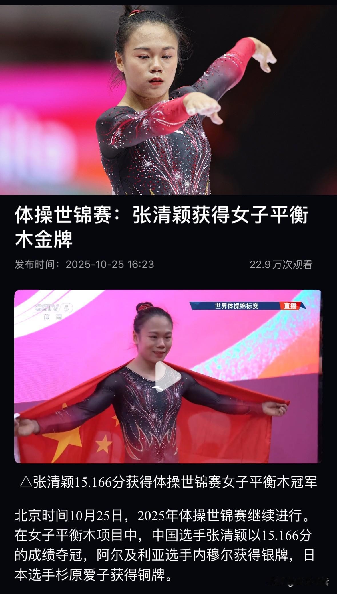 邹敬园、张清颖分别夺得男子双杠、女子平衡木冠军🏆[赞][赞][赞] 刚刚🔚