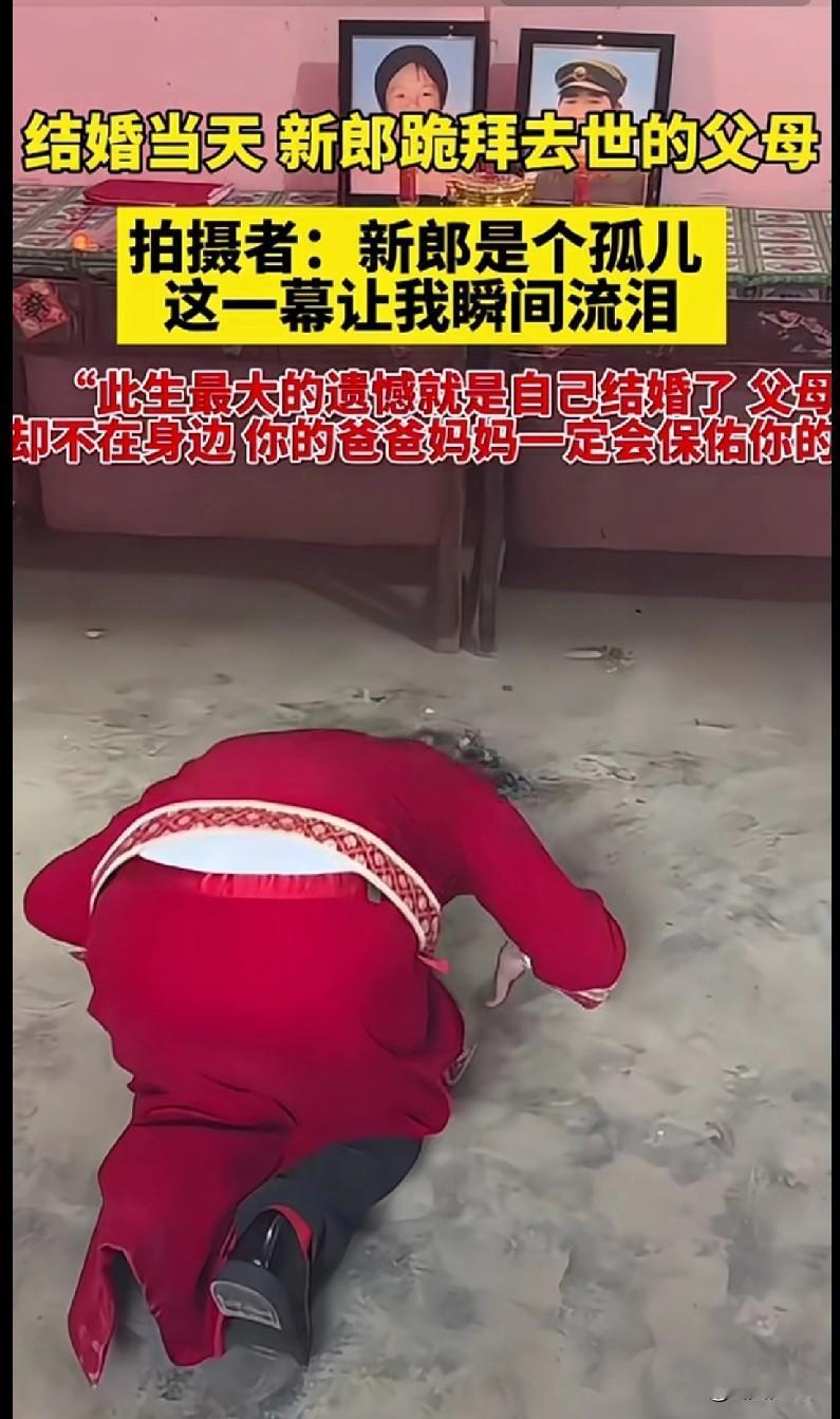 “家人们!刷到这个视频我直接破防了!结婚当天,新郎穿着红礼服,对着去世父母的遗像重重跪拜——原来他是个孤儿,这一幕把拍摄者都看哭了… 想想多心酸啊,人生最风光的婚礼时刻,却没法让爸妈亲眼见证。他说‘此生最大的遗憾就是结婚了父母却不在身边’… 这种滋味谁懂啊! 咱们平时总嫌爸妈唠叨,可真到了想分享喜悦却没人分享时,才明白那有多痛。你们有没有啥想对爸妈说却没来得及说的话?评论区聊聊,别等遗憾了才后悔!”