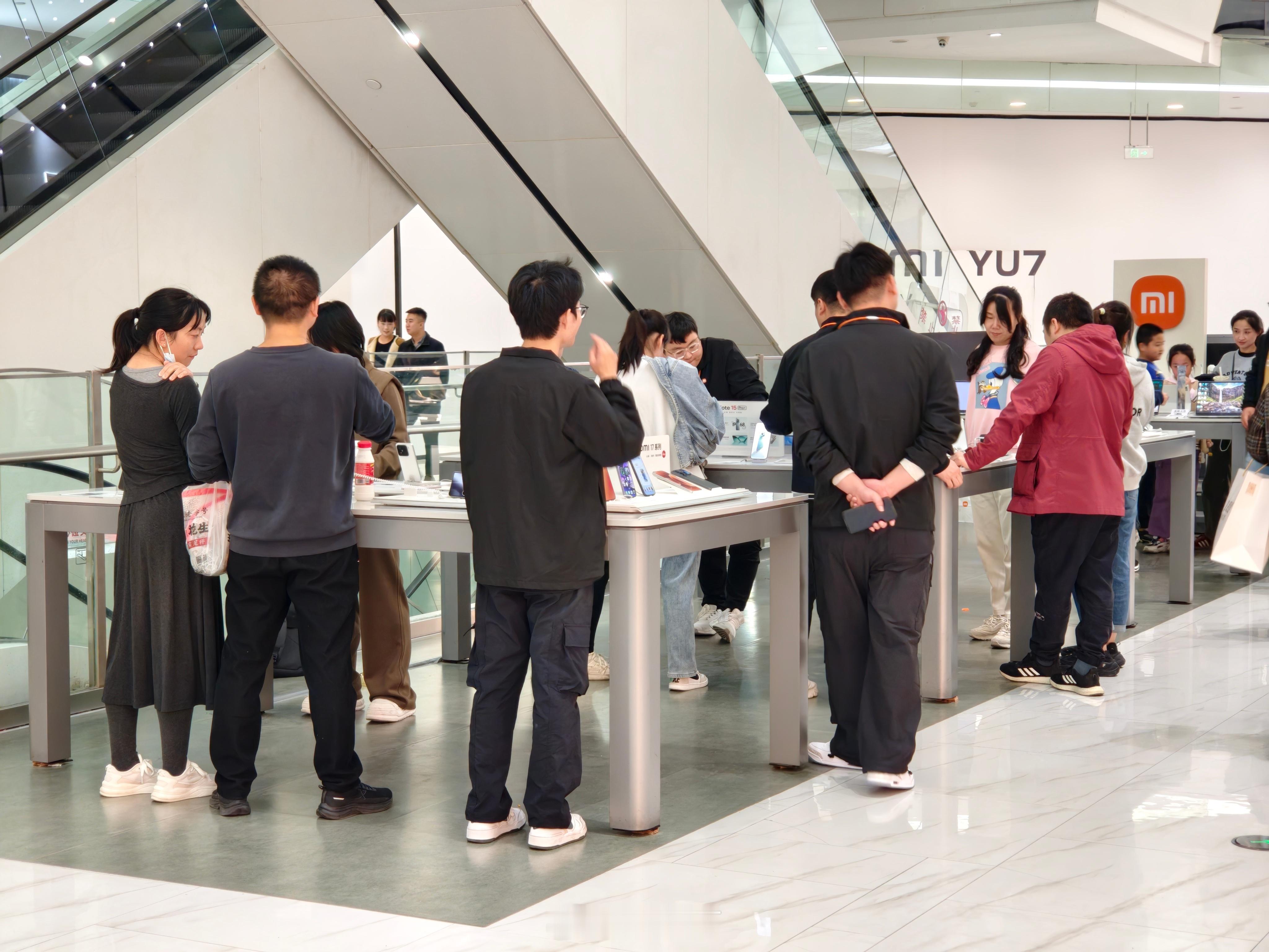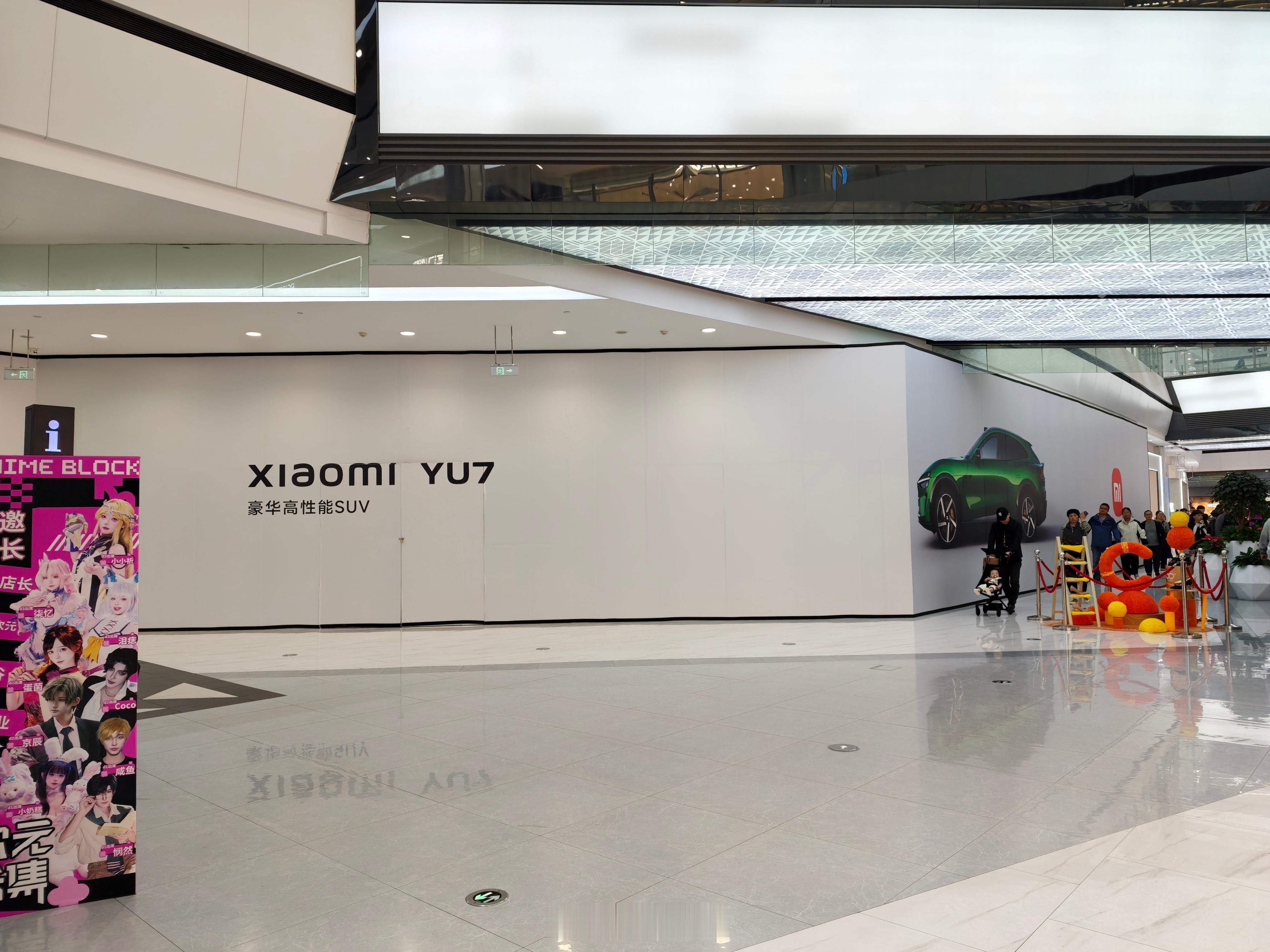 小米汽车即将入驻,所以体验区临时摆在了外面。