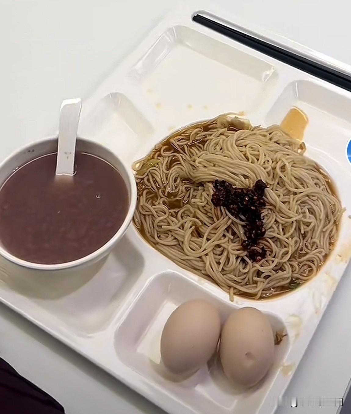 在某工厂刚下夜班, 在食堂吃了一份这样的早餐4元钱, 不仅有碳水,还有蛋白质, 饱腹感满满,浑身又充满了能量, 感觉又有了使不完的劲, 又可以打10个小时的螺丝了。 友友们,你们早上的早餐都吃什么呀? 一起分享一下,评论区见。