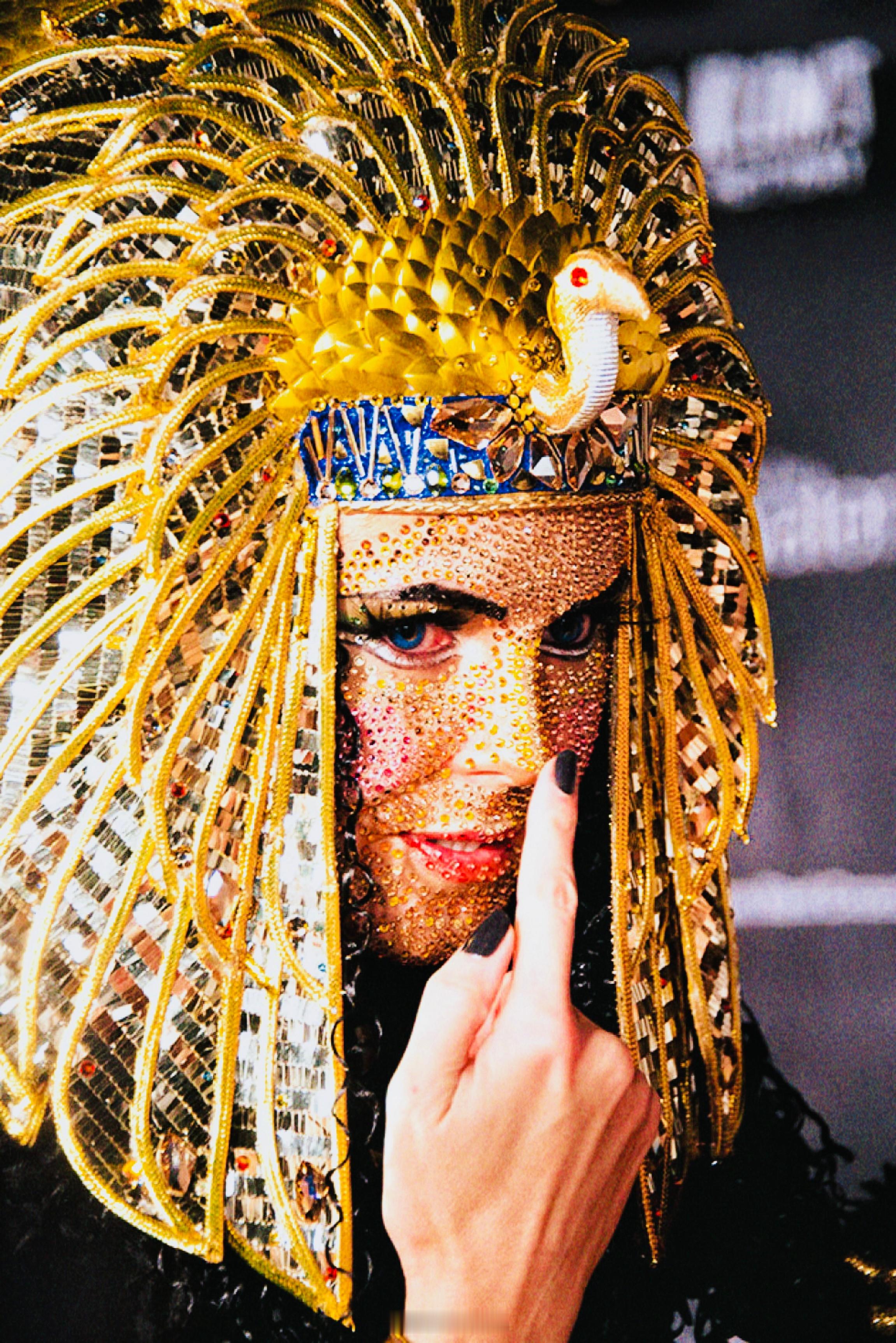 MrWG[超话]旧相簿子 密恐慎点![阴险]超模Heidi Klumheidi klum 2025的Halloween万圣节 🎃盛典还有6天,来回顾2012年海蒂的变装——满身尽戴黄金甲,这华丽丽的埃及艳后👑!从孔雀头冠、如蛇鳞如鸟羽的长裙、瓦蓝的双眸、满脸的缤纷钻石💎,Heidi真的每个细节都做足!