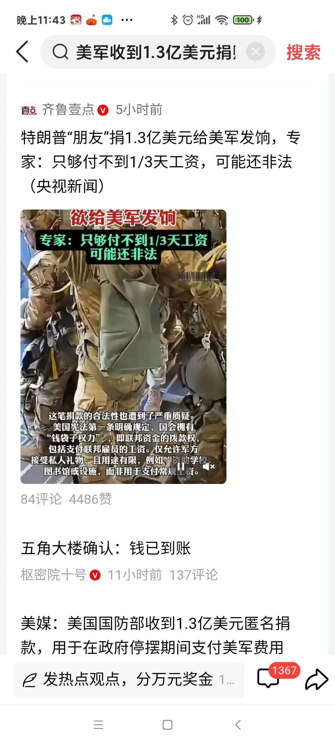 美军收到1.3亿美元捐赠! 这个钱是谁出的? 马斯克?赵长鹏?还是? 这算钱权交易吗?[笑哭]