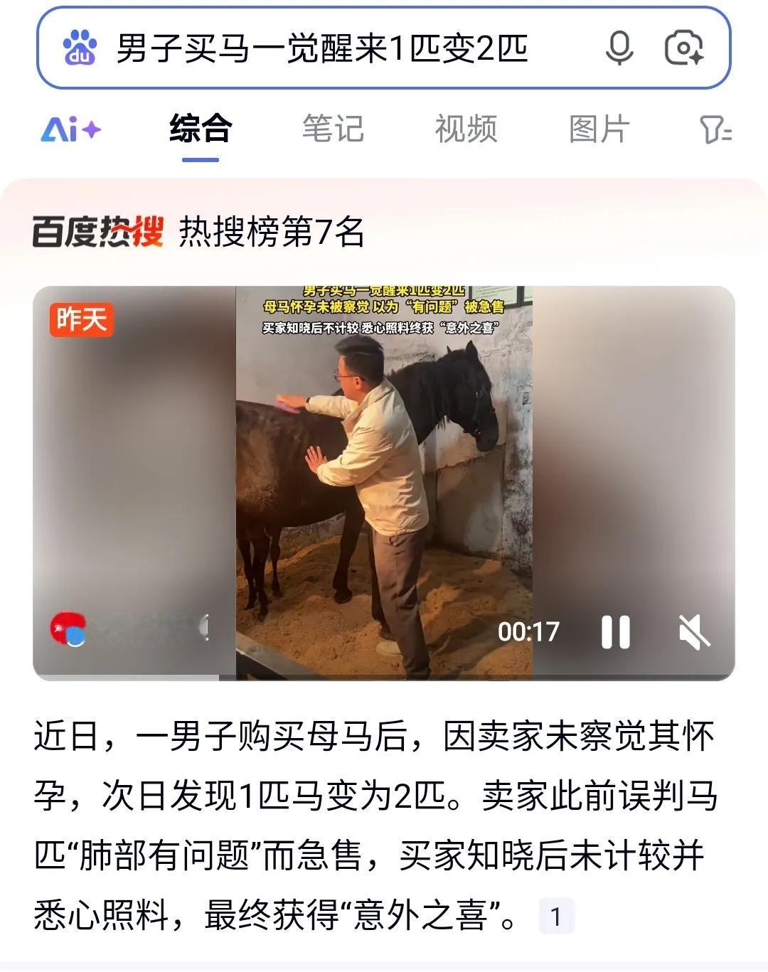 “一夜之间,他的马厩里居然凭空多出一匹马!是天上掉馅饼,还是背后另有隐情?” “山东的刘先生买了匹被认为‘肺部有问题’的急售母马,结果第二天清晨进马房喂马时,直接惊呆了——1匹马愣是变成了2匹!原来是母马怀孕没被察觉,卖家误判才急售。” “面对这场意外,刘先生不仅没计较,反而悉心照料。他描述那种惊喜‘跟中了彩票一样’,但‘不是用钱来衡量’。这匹‘赠品’小马的到来,成了他善良和耐心最好的回报。” “这哪是买一送一?这是现实版的‘善良经济学’!当你用真心去对待每一个生命,生活往往会在不经意间,给你最温暖的奖励。” “所以啊,有时候你看似的‘吃亏’,说不定正悄悄为你准备了双倍的甜蜜。在生活这场交易里,良心,永远是回报率最高的投资!” “为这份意外之喜点赞!愿你也能被生活温柔以待。”