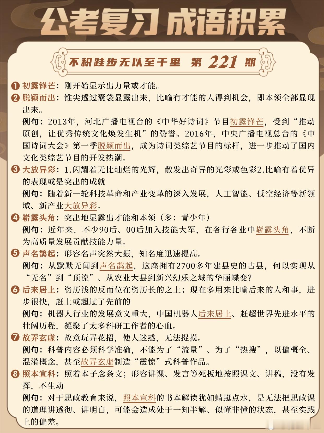 初露锋芒 脱颖而出 大放异彩 崭露头角