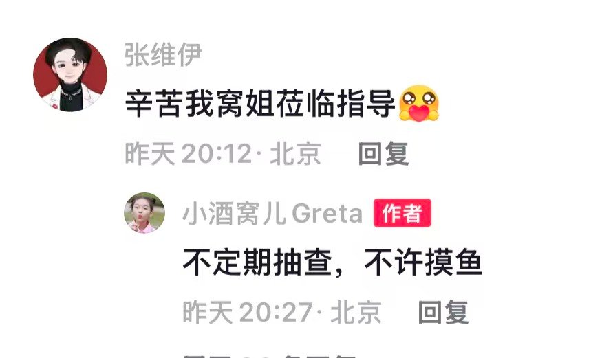 张维伊改口喊小酒窝窝姐张维伊不喊窝子了 10月25日,小酒窝社交平台更新探班视频,张维伊:“辛苦我窝姐莅临指导”小酒窝:“不定期抽查,不许摸鱼”网友:张维伊改口了,喊小酒窝窝姐了!