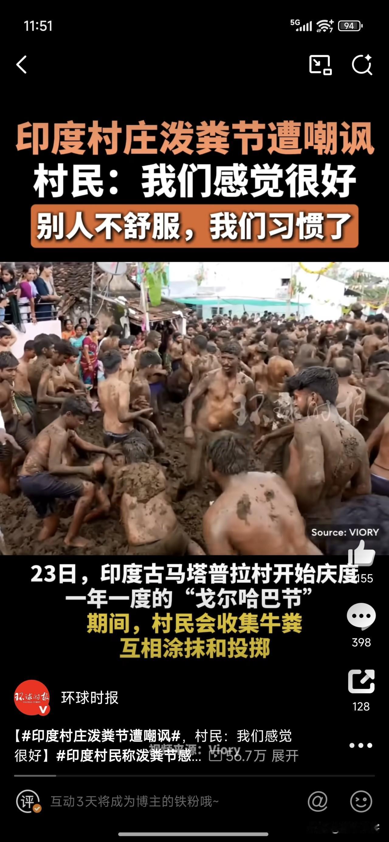 果然吃屎吃出了自豪感来了! 印度人搞了一个泼粪节,你没看错,真的是屎,而且还玩屎玩的不亦乐乎! 印度人觉得大家互相泼粪,可以净化身心,带来健康!