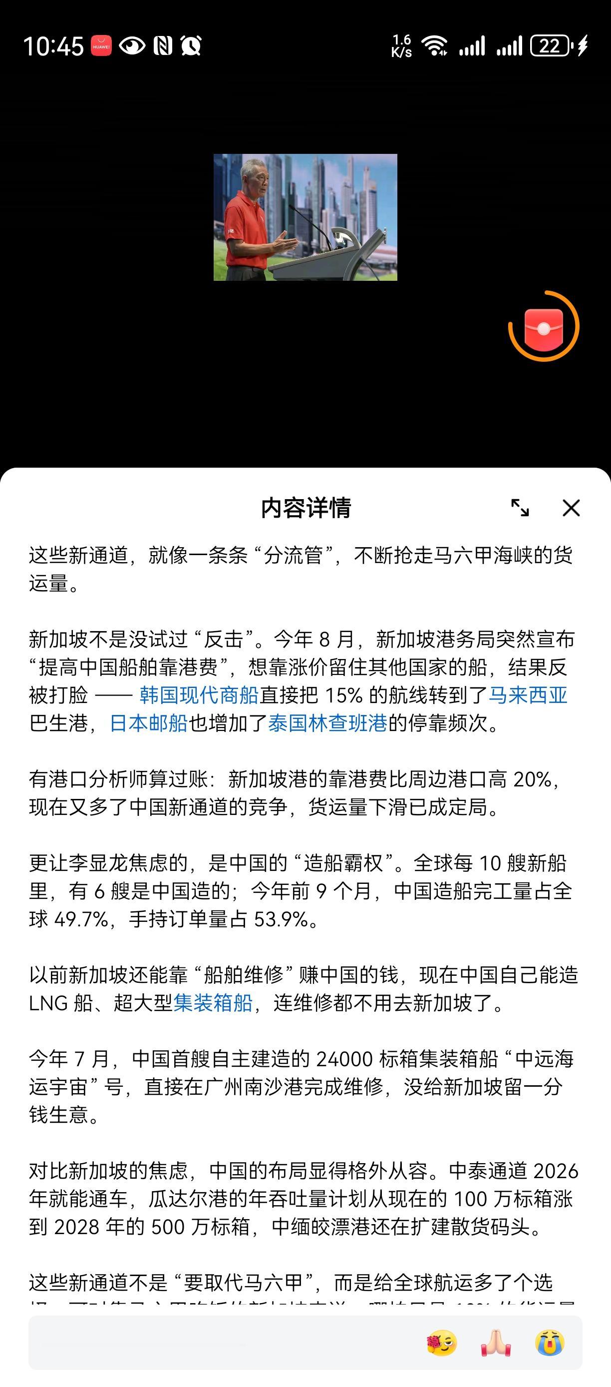 新加坡🇸🇬慌了吗新加坡 一边李总理815跑到日本授勋? 一边其印度人总统教育我们认命[强] 现在又在开始骂街我们不能增加航道? 满满的不爽啊[强][流泪]新加坡发展策略