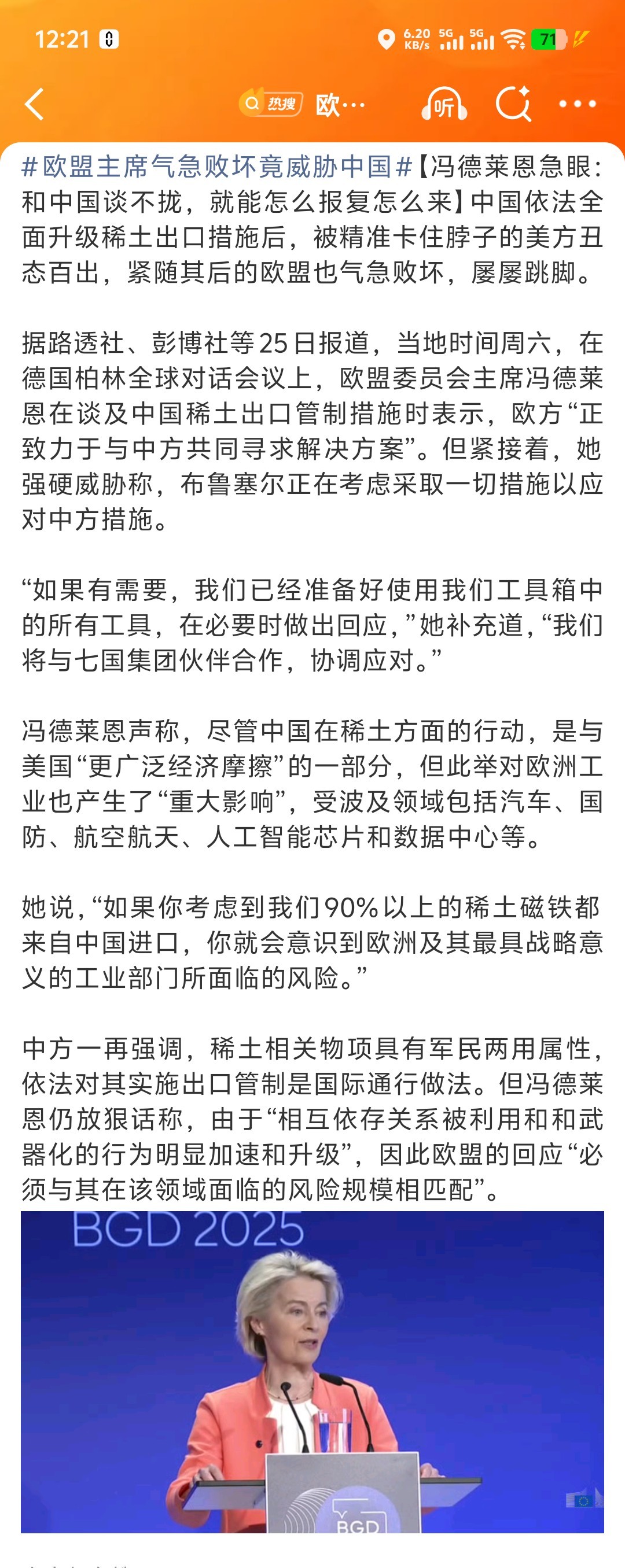 欧盟主席气急败坏竟威胁中国冯德莱恩:和中国谈不拢,就能怎么报复怎么来[收到][并