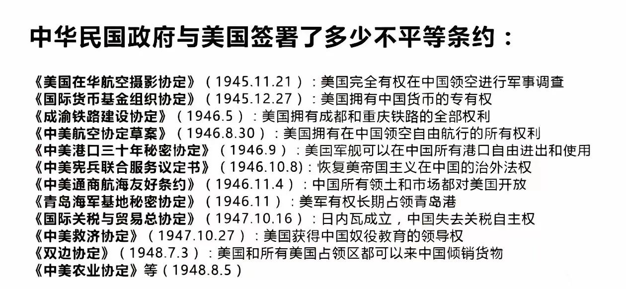 看看国民党和美国签订的不平等条约,国民党在美国面前一直是软骨头,贱骨头,这是出卖
