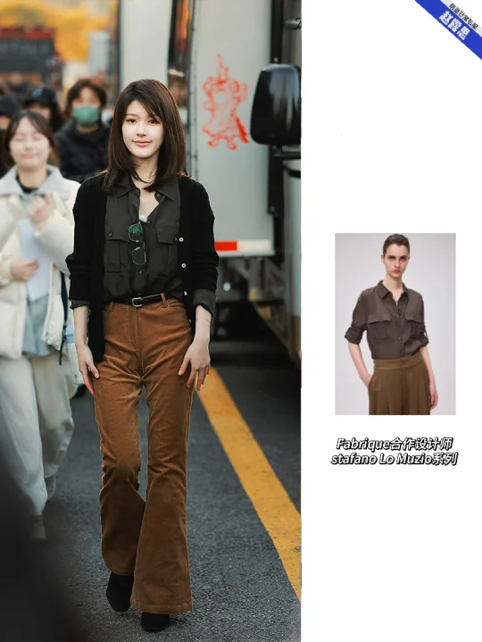 陈瑶秋日穿搭,咖啡色背心牛仔,轻曼时尚