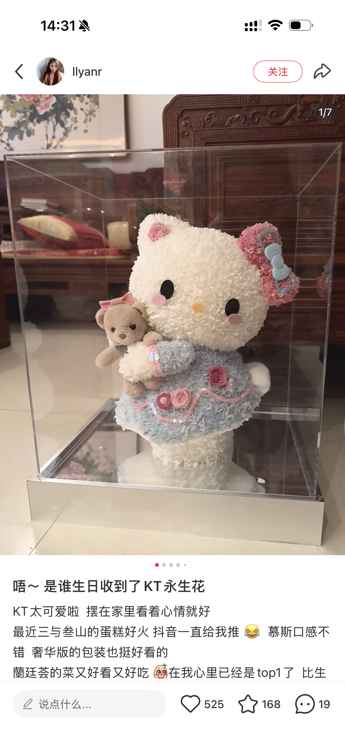 卢圆圆家里有一个特别特别漂亮特别特别精致特别特别可爱的的kitty永生花,类似于这种,我说我想要,我要搬回家,她说必须得等我老实一阵子不作出什么事儿或者做出什么好事儿出来才能给我[太开心]不能让我轻而易举的得到它 ​​​
