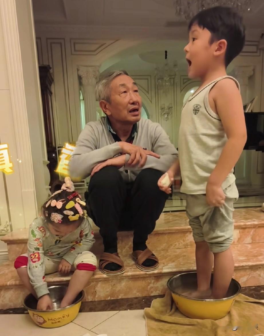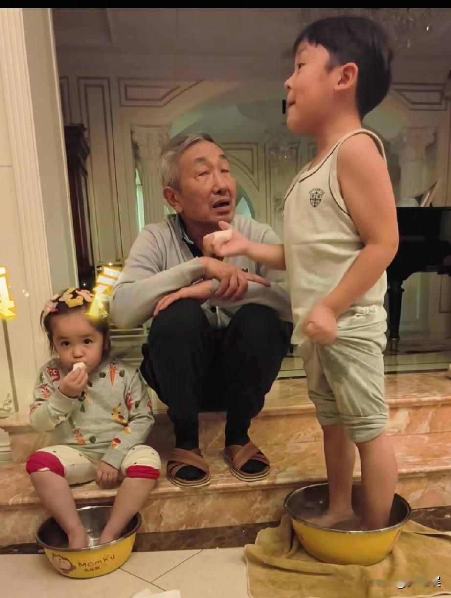 杜源,忙的不亦乐乎! 他虽然没有拍戏,但是在家里也是忙的不亦乐乎,孙子孙女把他忙的团团转,给两个孩子洗脚,孙女拿面包沾洗脚水吃了,哈哈,一会没看到就不行啊! 洗完了,孙女要给他个小辫子,孙子说这样出去才像一家人,杜源说没有小辫子就不是一家人了,整的跟葫芦娃似的,哈哈,这就是所谓的幸福老年生活!