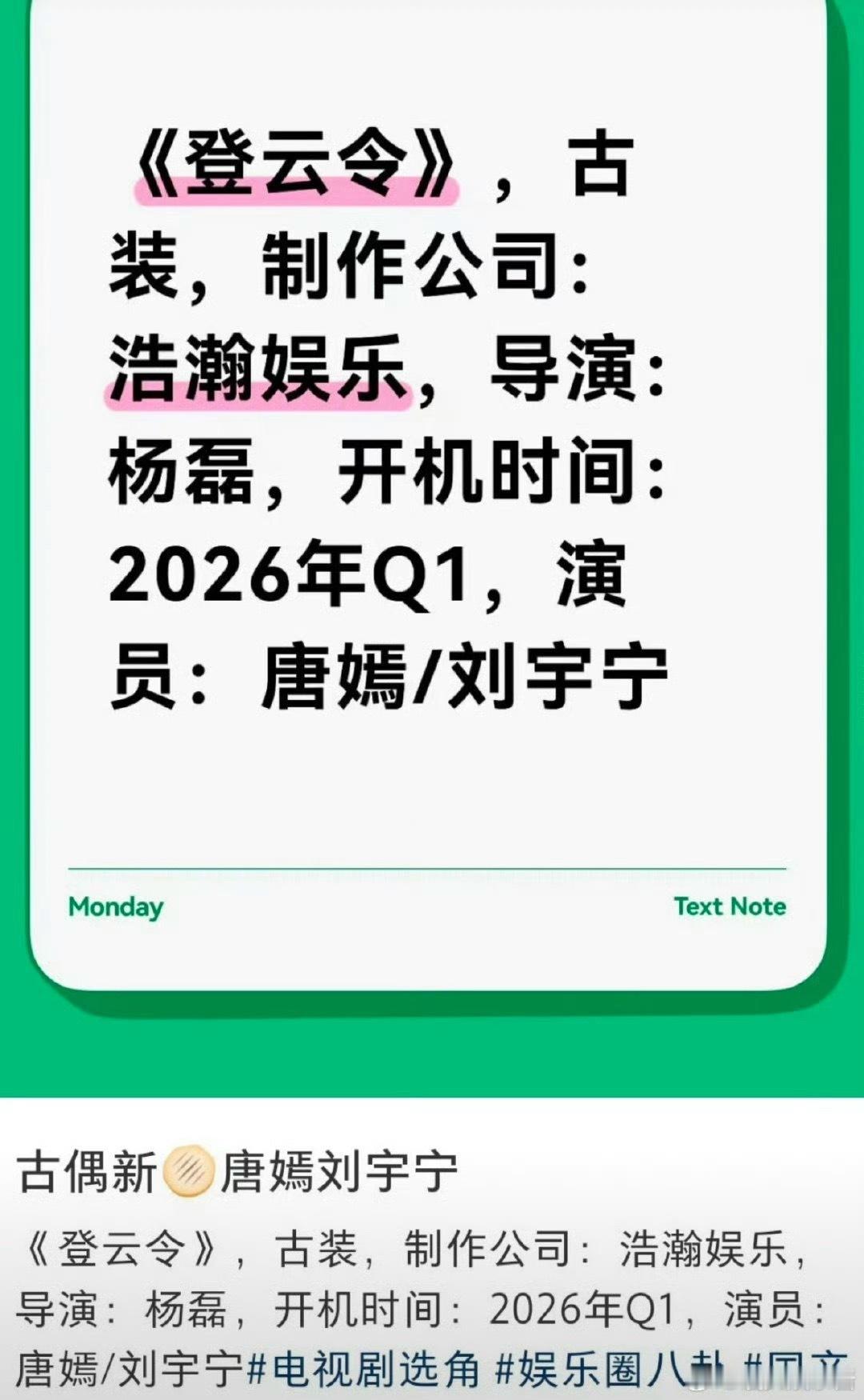 《登云令》🍉唐嫣、刘宇宁,期待值如何