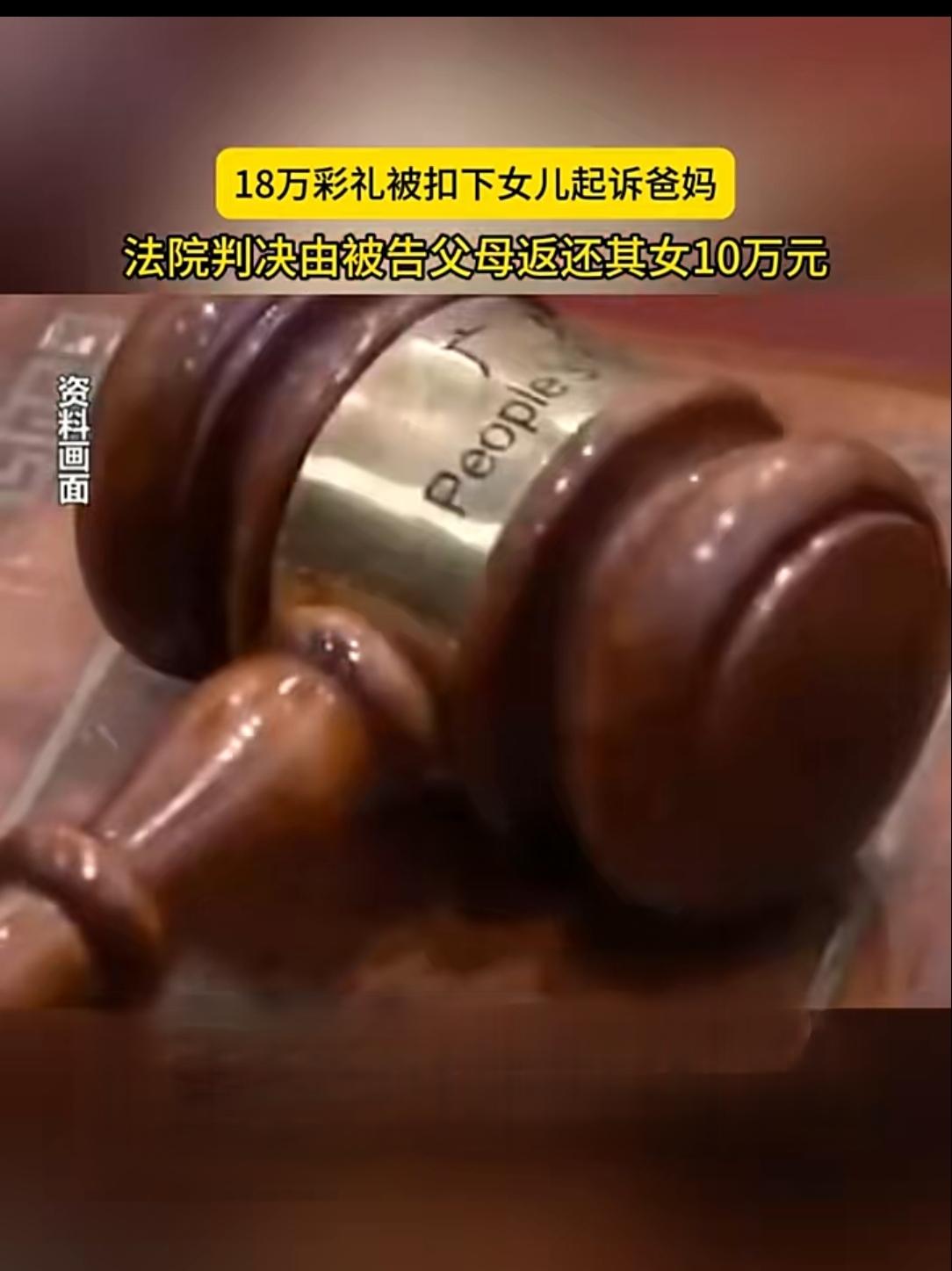 离谱!女儿告父母要18万彩礼,法院判还10万 浙江台州黄岩区法院最近判了个奇