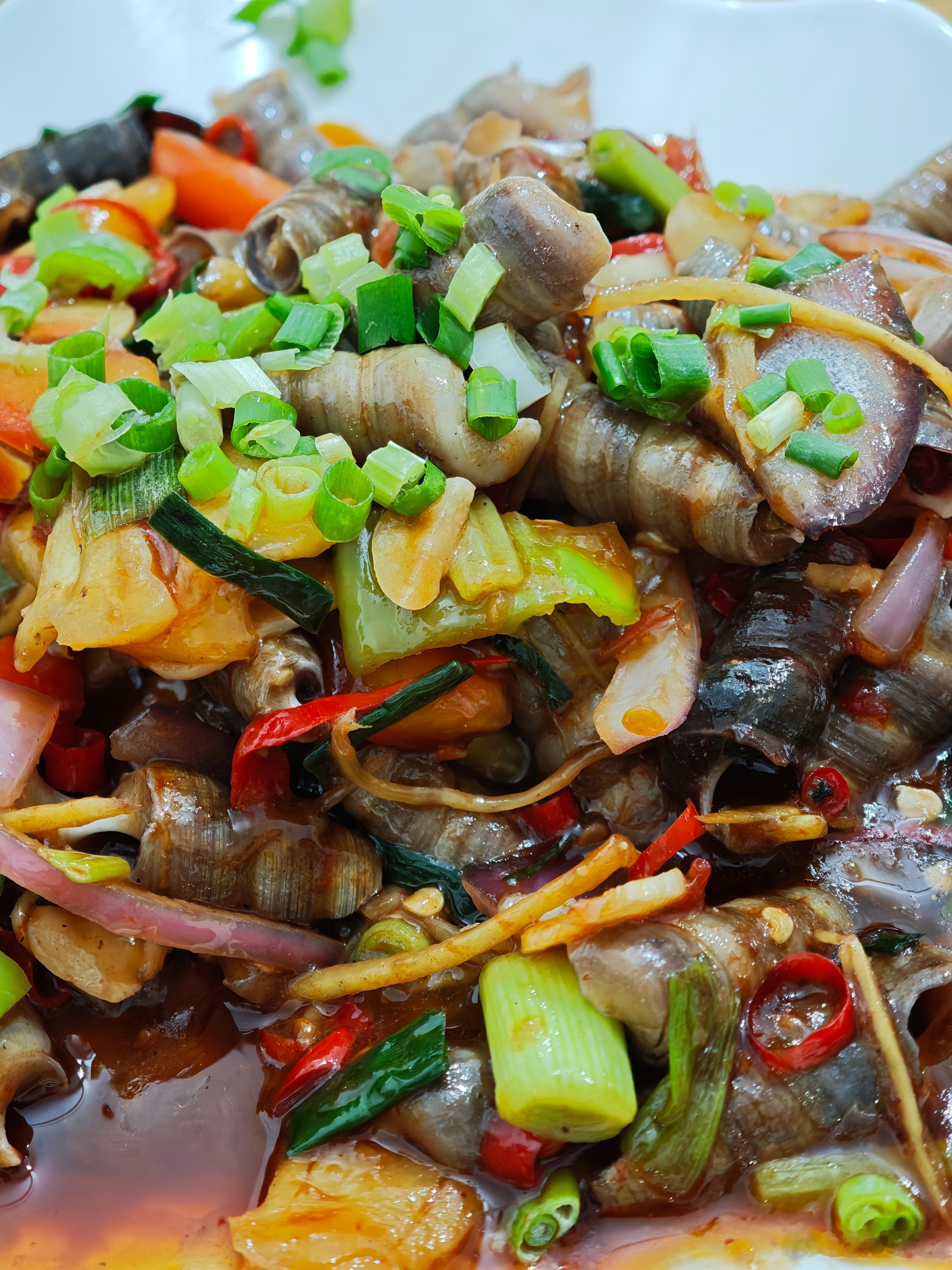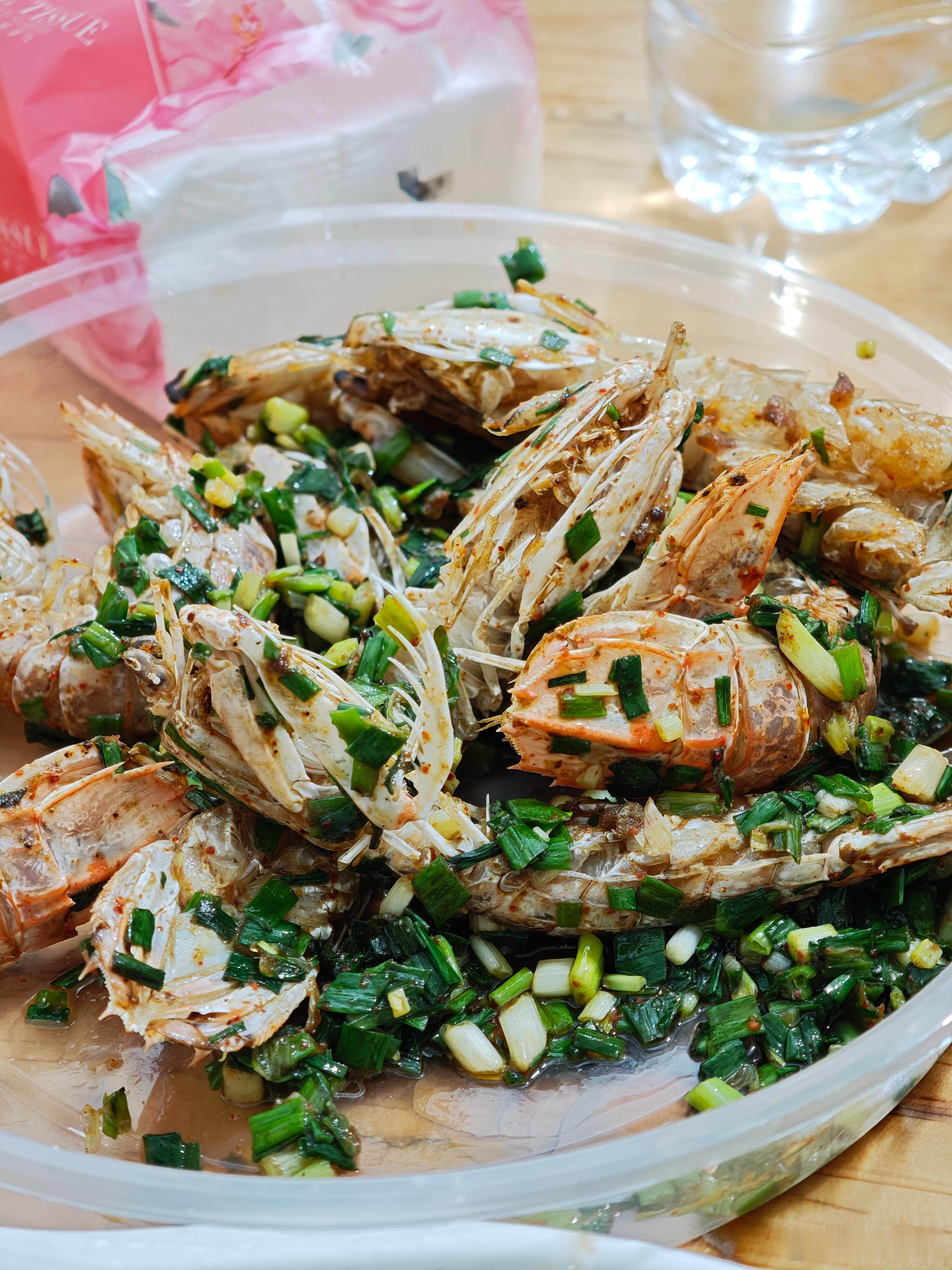 海鲜都很新鲜,炒的也有水平,炒鱿鱼里面加的笋片,炒钉螺里面加的菠萝,椒盐皮皮虾放的葱,都很对味[馋嘴]