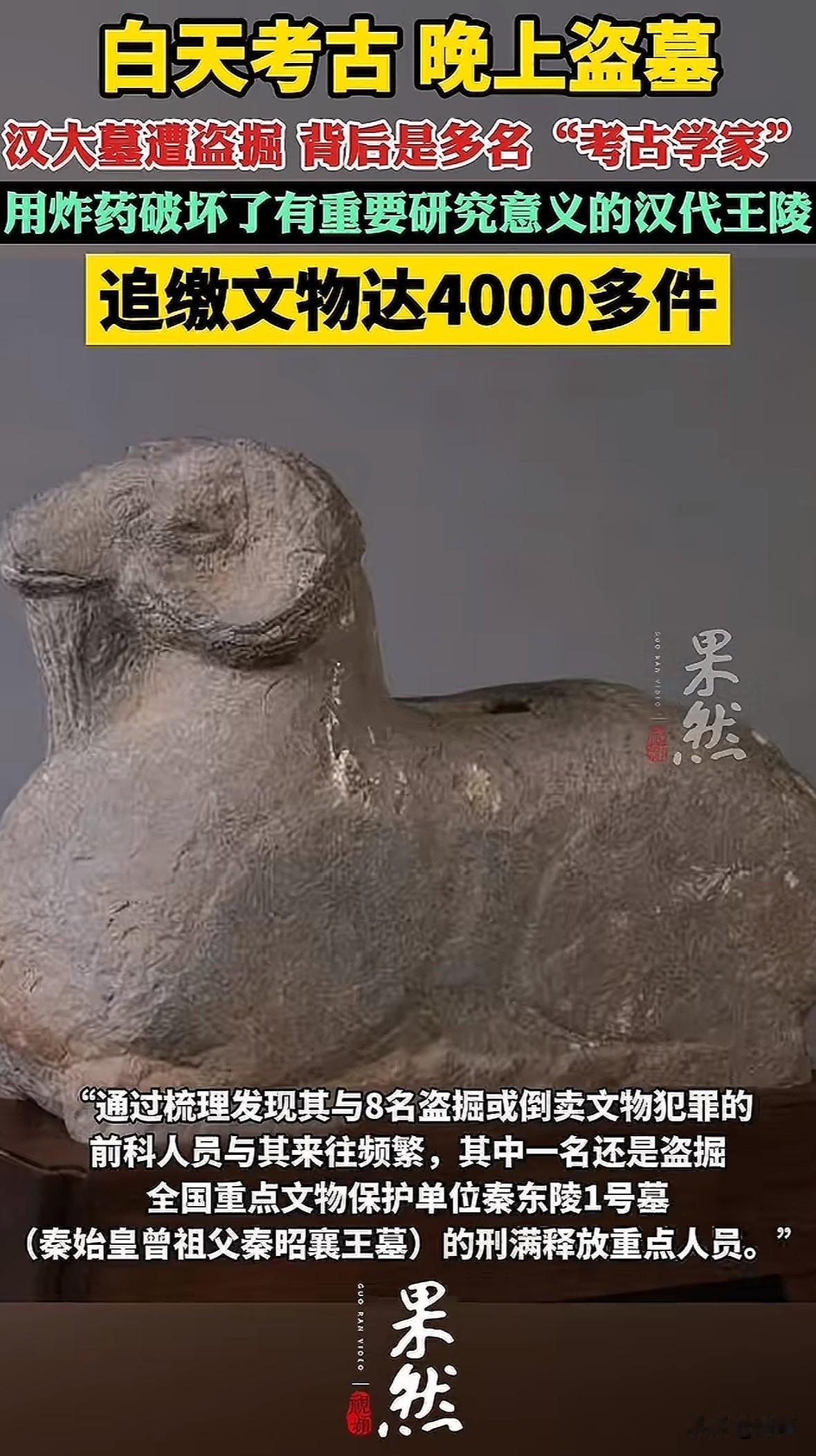 江苏徐州破获一起特殊盗墓案。主犯李某是文物勘探公司法人、非遗传承人,常参与考古发掘和学术活动。他白天跟考古队做保护性发掘,夜里却带团伙用炸药盗掘古墓,为偷汉画像石暴力拆解,破坏严重。 2020年10月,警方从一件商代青铜弓形器入手侦查。2021年2月,在11省市收网,抓27人,破66案,追缴文物4000余件,其中珍贵文物100多件。2025年9月,最后一名嫌疑人被公诉,20多人将受制裁。 考古本是护文物,李某却监守自盗。文物不能再生,法律明确盗掘古墓葬从重处罚,这种知法犯法的行为更该严惩。守护文物得靠敬畏心,专业身份绝不能成犯罪遮羞布。