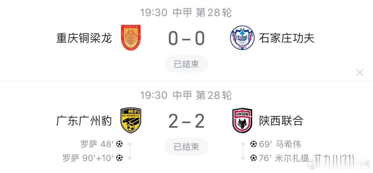 中超的事一会再说~中甲铜梁龙没赢,但是广州豹差点输了,老罗萨梅开二度以及准绝平。