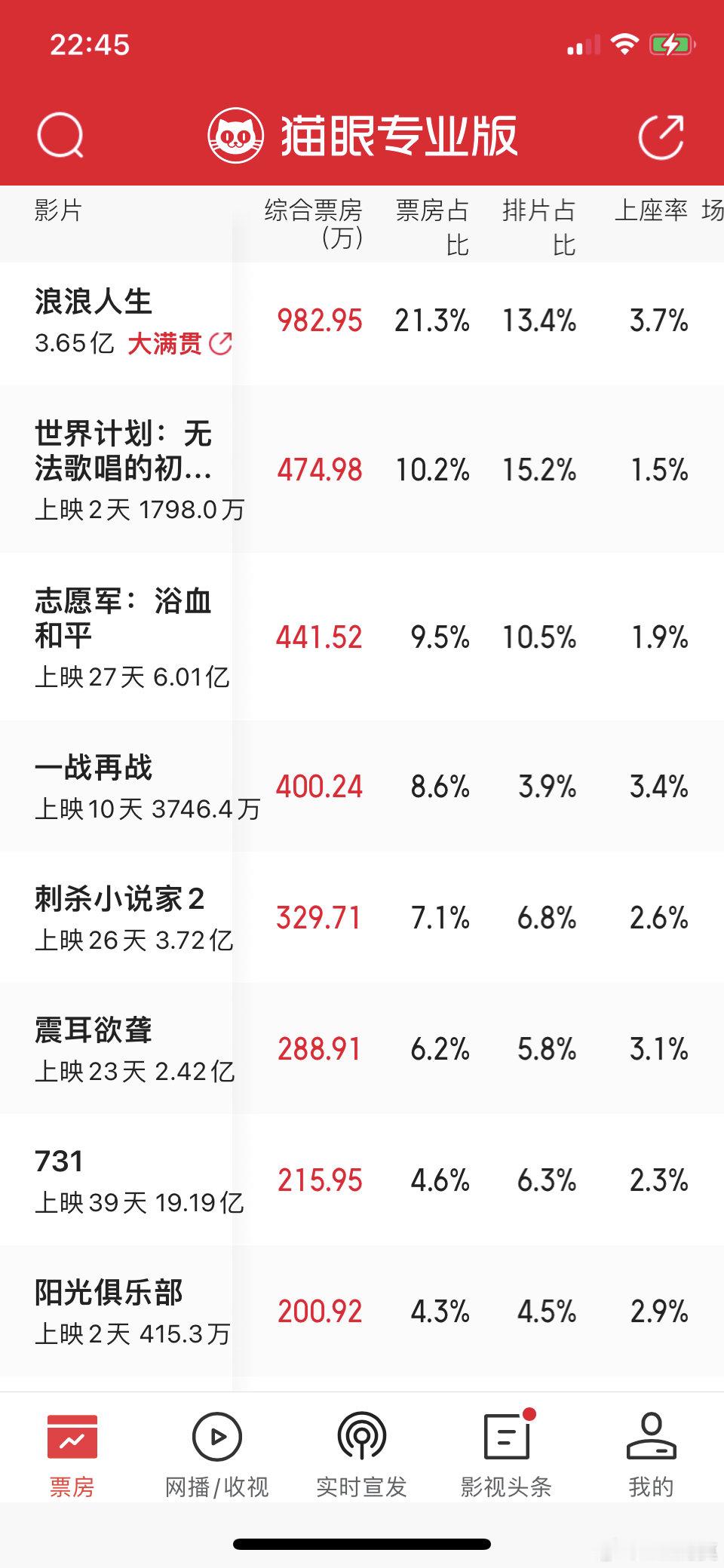 《浪浪人生》单日票房接近千万,是第二名的一倍多。这个表现还是很给力的。