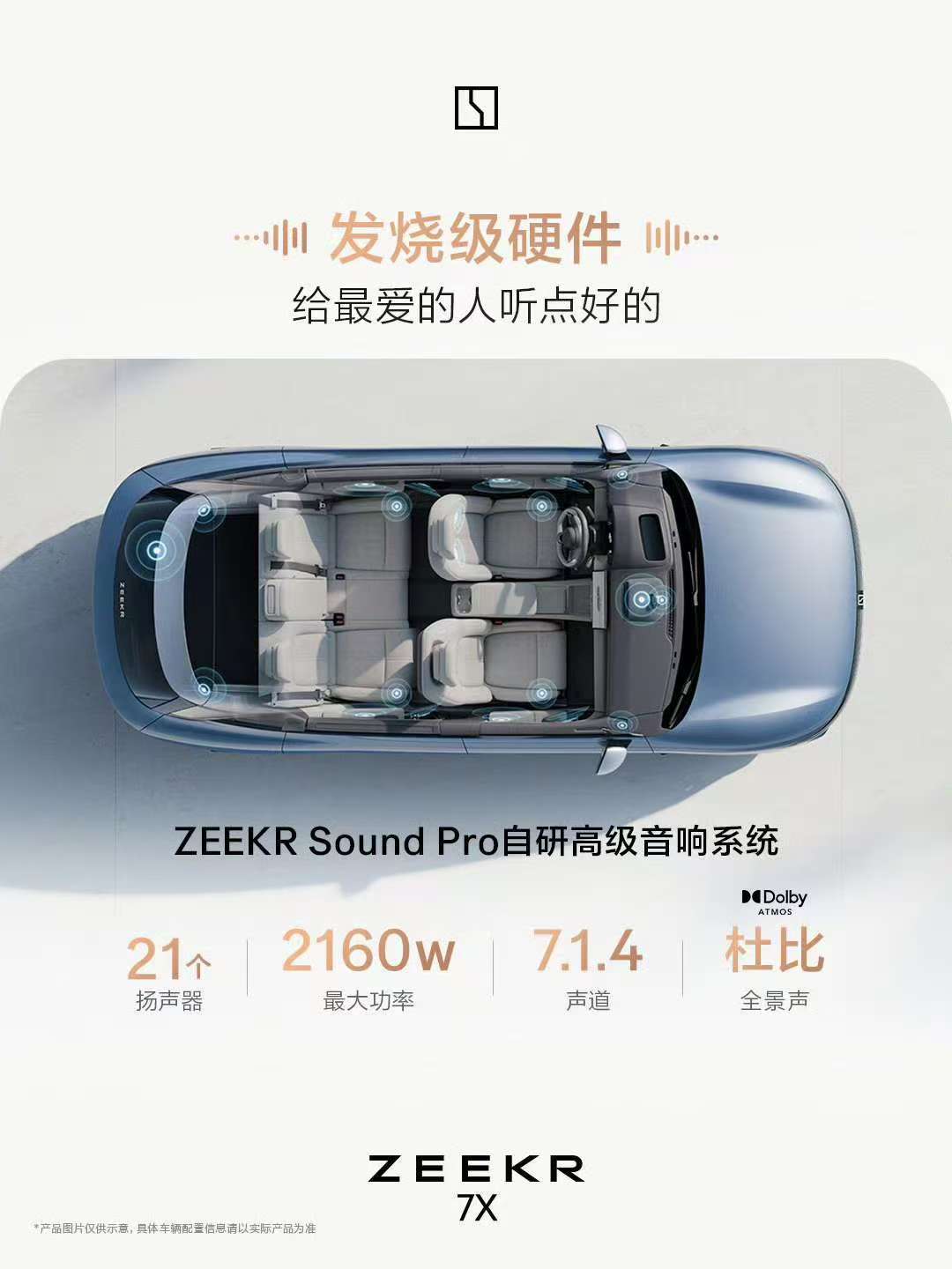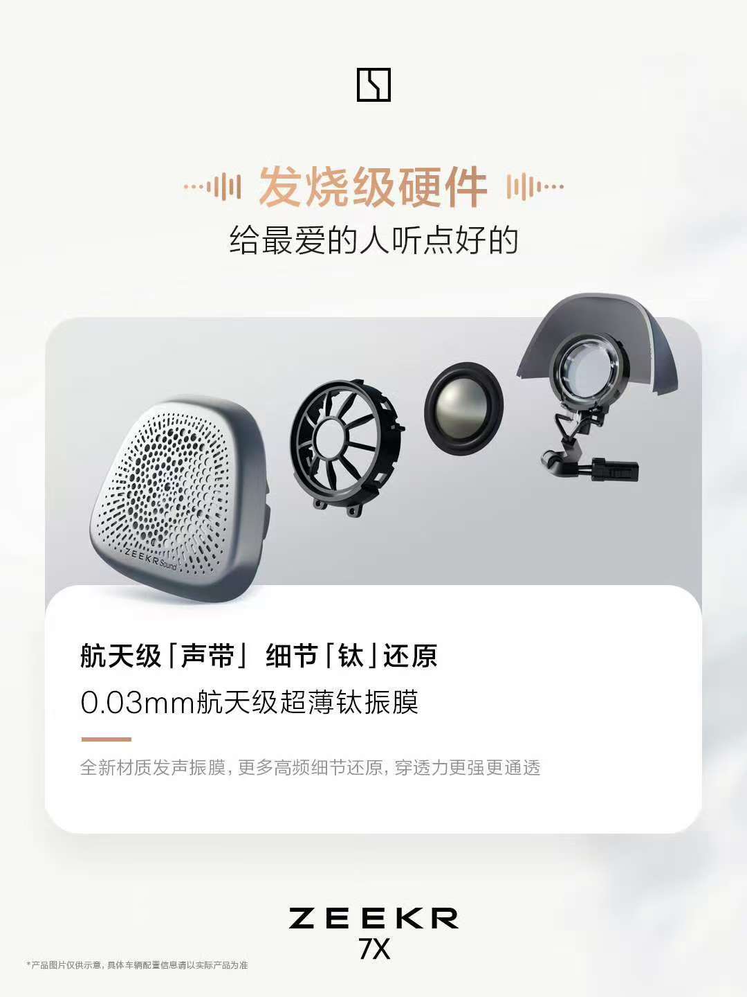 虽然说极氪7X这新车现在开始预售啦,但我发现它这车最亮眼的就是音响——足足21个扬声器,还用了航天级的超薄钛振膜,不管是放摇滚还是儿歌,声音细节都特清楚。
