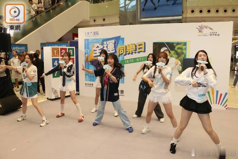 《聲夢傳奇》歌手孫漢霖(火雞)、新出道7人女團idG Bubbles聯同高爾夫球新秀林日曦及運動大使唐焯彬今日(26日)出席上水廣場舉行的「全運同樂日」,他們大玩高球遊戲,火雞與idG Bubbles又即場獻唱歌曲,炒熱全場氣氛。