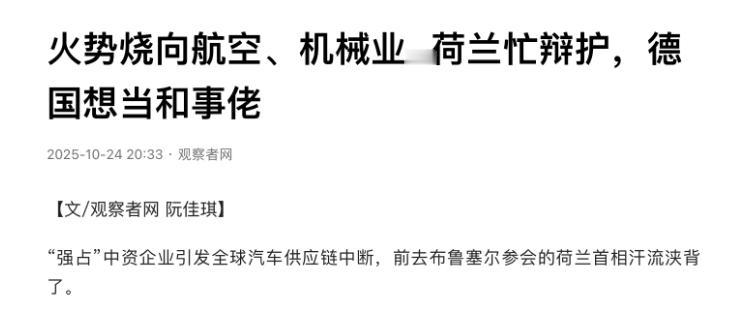 想不到吧?堂堂一国首相,竟然可以如此不顾体面! 荷兰首相斯霍夫在欧盟峰会召开前,四处为自己开脱,张口就是“不是我的错,是安世半导体的问题,是他们‘首席执行官管理不善’”。这理由简直离谱到让人想笑,这场搅得全球汽车业鸡飞狗跳的“芯片地震”,明眼人都知道源头在哪。 要知道,安世半导体可不是什么小作坊,它是全球汽车芯片领域的“隐形冠军”,车规级MOSFET零件和二极管的市场占有率足足有15%,大众、宝马、丰田这些车企的生产线,哪天离得了它的芯片?毫不夸张地说,安世一停,欧洲不少汽车工厂就得跟着歇业。可荷兰政府不管这些,说动手就动手,连个提前通知都没有。 更讽刺的是,他们拿出来当“尚方宝剑”的《货物可用性法案》,是1952年冷战时期搞出来的东西,原本是为了应对战争、自然灾害这种真正的紧急情况,现在却被用来对付一家正常经营、业绩还不错的中资企业。 而且荷兰政府的操作,时间点也太“巧”了。就在他们接管安世半导体的前一天,美国刚宣布扩大对华半导体出口管制,明摆着是要卡中国技术的脖子。这边美国话音刚落,荷兰那边就立马跟上,这种“默契配合”简直天衣无缝。 可荷兰经济大臣还嘴硬,说这是“荷兰的独立决定”,结果转头就急着找中国商务部长对话,想把责任推给中方,扯什么“担心中方转移知识产权”。合着你们先动手抢了我的东西,现在倒反过来怪我没把东西看好? 再说说,斯霍夫嘴里“管理不善”的CEO张学政,人家到底怎么“不善”了?安世中国区的员工都看不下去了,荷兰总部那边刚中断公司系统权限,还放话不支付中国区员工薪水,结果安世中国很快就澄清,工资福利全由国内公司正常发放,压根没受影响。这哪像是有“管理危机”的样子? 反而更像荷兰政府故意制造混乱,想给罢免CEO找个借口。更别说安世半导体的德国工厂负责人,直接公开替张学政说话,说他任内推动了好几个技术升级项目,公司业绩一直稳中有升,根本没出现过所谓的“失职”情况。 要是再看数据,荷兰政府的谎言就更站不住脚了。安世半导体2024年的营收同比增长了12%,车规级芯片的出货量还创了历史新高,这样的成绩单,是“管理不善”能搞出来的? 反观荷兰政府指定的那个托管人,接手才不到一个月,就把供应链搞断了,欧洲车企的芯片库存现在只能撑几周,大众、奔驰这些巨头都被迫调整生产计划,有的工厂甚至开始轮岗放假。这哪是“救火”啊,分明是“纵火”吧?把一家好好的公司折腾成这样,还好意思倒打一耙说前任CEO不行,脸皮也太厚了。 其实稍微琢磨琢磨就知道,荷兰政府敢这么干,背后少不了美国的影子。早在2025年6月,美国商务部的官员就找过荷兰,要求他们解除安世中国总裁的职务,理由是“可能威胁美国国家安全”。现在再看9月底的操作,美国9月29日扩大出口管制,荷兰9月30日就动手接管安世,这时间差掐得,说不是提前商量好的谁信? 更有意思的是,斯霍夫在欧盟峰会上哭丧着脸说“中国断供芯片”,却对美国怎么施压荷兰的事儿一字不提,生怕别人知道自己是美国的“马前卒”。这让我想起《三国演义》里的周瑜打黄盖,一个愿打一个愿挨,只不过荷兰这“黄盖”当得也太憋屈了,明明是帮美国办事,还得自己扛下所有骂名。 美国的算盘其实很清楚,就是想通过控制欧洲的半导体产业链,一边遏制中国的技术升级,一边巩固自己在全球的霸权地位。可荷兰好像没搞明白,美国根本不是什么“好大哥”。就在荷兰接管安世半导体的时候,美国国会正在推动《芯片与科学法案》的修正案,要求拿到美国补贴的欧洲企业,必须限制和中国的合作。 荷兰政府原本以为,拿住安世半导体就能拿捏中国,结果没想到中国的反制来得这么快、这么准。10月4日,中国商务部直接宣布,对安世中国及其分包商实施出口管制,禁止向荷兰出口特定的半导体元件和成品。这招“以其人之道还治其人之身”,直接戳中了荷兰的要害。 安世半导体在欧洲的工厂,有40%的原材料都得从中国进口,现在断供了,生产线很快就得停摆。更讽刺的是,荷兰政府之前还跳出来指责中国“滥用出口管制”,结果现在自己先尝到了断供的滋味,这脸打得啪啪响,估计斯霍夫现在连肠子都悔青了。 而且荷兰的麻烦还不止这些,中国的反制措施一出来,欧洲车企立马就慌了。德国汽车工业协会直接发警告,说要是安世半导体的供应链三个月内恢复不了,欧洲车企的损失就得超过50亿欧元,到时候还得有一大批工人失业。在这么大的压力下,荷兰经济大臣不得不悄悄联系中国企业,想通过“非正式渠道”恢复合作,可中方的态度很明确:先把对安世半导体的接管解除了,再谈别的。 说到底,荷兰政府这场“甩锅”闹剧,把西方的霸权思维和双重标准扒得一干二净。这种“既要又要”的贪心,最终只会搬起石头砸自己的脚。